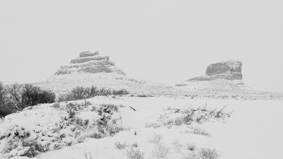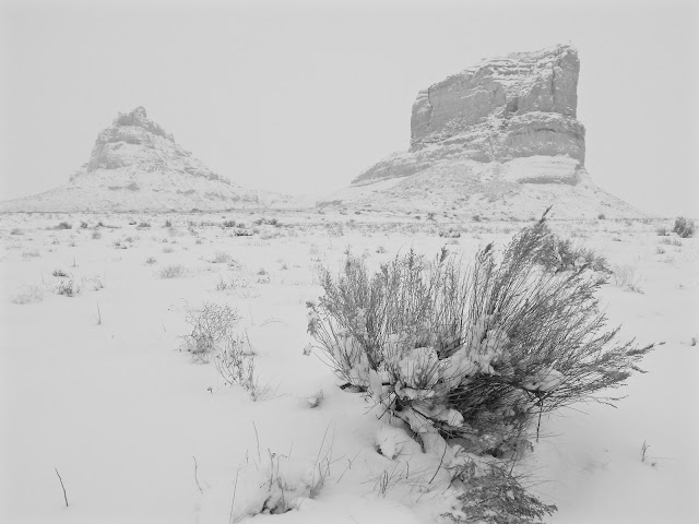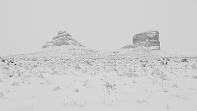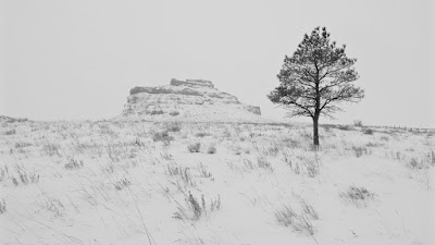 On a wintry morning in western Nebraska, I wandered around Courthouse and Jail Rocks, photographing the countryside in bad weather. The megaliths were like ghosts of the Great Plains as they were barely visible during an extreme whiteout.