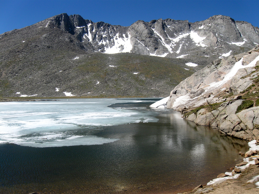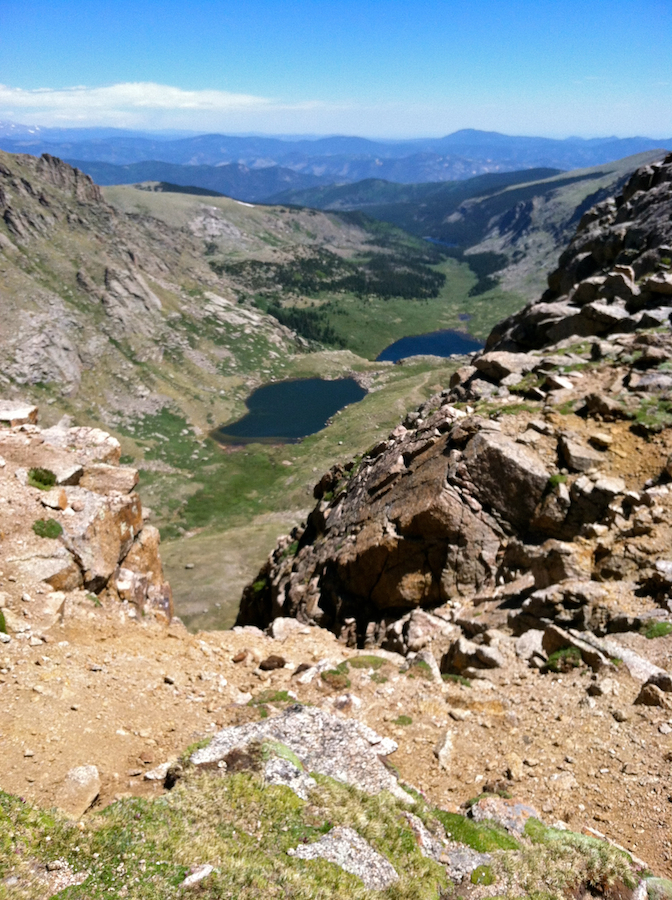Our first stop was Summit Lake nestled high in a glacial basin just below the summit. This cold, clear lake is the headwater for Bear Creek and flows down into Evergreen Lake and then all the way to Denver. We really got our blood pumping by ascending to the top of Mount Spalding and looked down into the beautiful Chicago Basin. After getting some pictures of the lake, we drove the treacherous, winding road up to the summit parking lot.