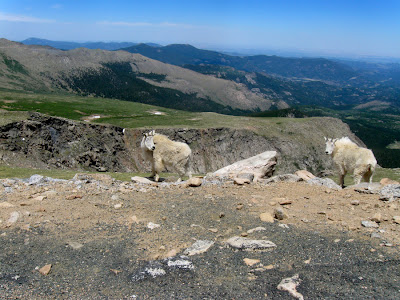 After a delicious Father's Day breakfast served in bed by my two boys, we decided to drive to the summit of Mount Evans. To get to the top is a 30 mile drive from our front door. As we ascended the highest paved road in North America, our first wildlife sighting was a herd of elk, grazing high above timberline. In the summer the elk move up to higher elevations and cooler temperatures. Rocky Mountain Elk are built for the cold and don't tolerate heat very well.