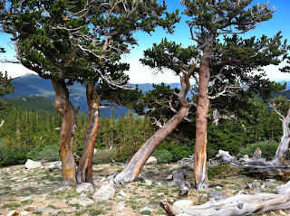 On the way back down we stopped at Mount Goliath Nature Area. In this protected area lives a stand of 2,000 year old Bristlecone Pine trees. Their gnarled trunks a testament to the high winds that blow down from the high peaks. A short nature trail features these battered warriors, beautiful wildflowers and wonderful songbirds. We had a great Father's Day and I would definitely recommend this day trip for anyone looking to escape the heat and explore the wonder of life above treeline.