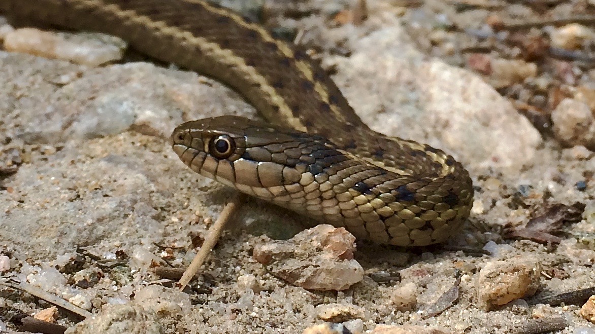 I have a fear of heights, but I love to climb mountains. I'm scared of snakes, but I will eagerly handle them. A few days ago while hiking the shoreline of a small mountain lake, we encountered a Western Terrestrial Garter Snake.