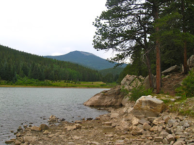 | Shoreline of a mountain lake |