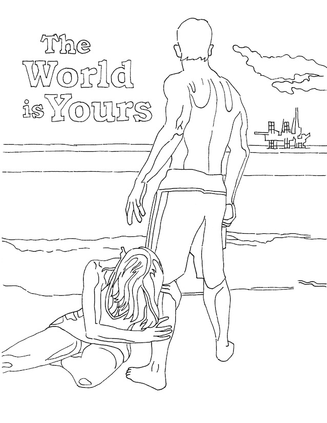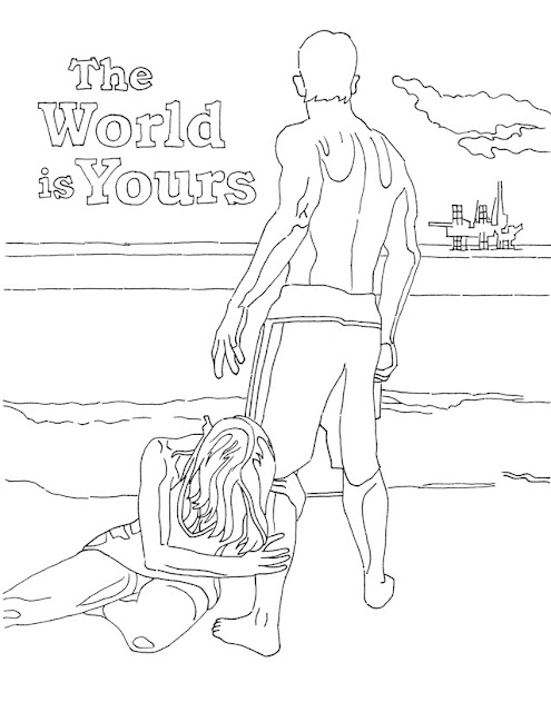 Now fully committed to the project, I processed the author's instructions. "...a man and a woman on the beach. The man is standing facing out towards the ocean in only a swimsuit, exposing his back, staring at an oil rig far in the distance. The woman is on her knees, just to the left of him in beach attire, hugging the man's leg implying 'please don't go!' The man facing into the distance has none of his attention directed towards her, just the oil rig, a pistol in his right hand, not aimed, just in his hand."