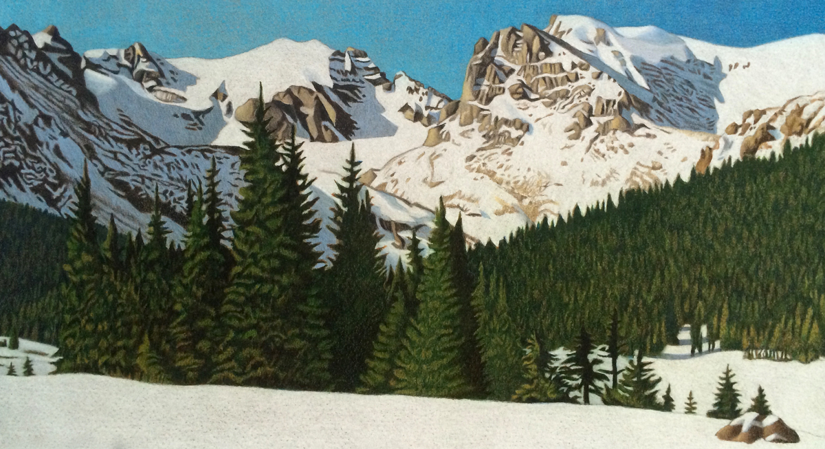 Indian Peaks Winter - Colored Pencil Drawing