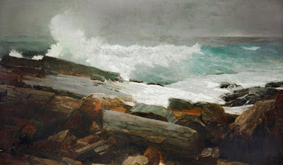 I've always admired the American artist Winslow Homer because of his relentless pursuit to capture the fleeting effects of stormy weather. Homer was most productive during his later years at Prouts Neck, Maine. Concealed in a studio by himself, just paces from the Atlantic Ocean, he constantly observed a narrow spit of land and watched as storm-churned seas pounded the rocky coastline. There is no doubt Homer's late masterpieces are a direct result of his close relationship with the sea and his immediate examination of the area in all types of meteorological conditions.