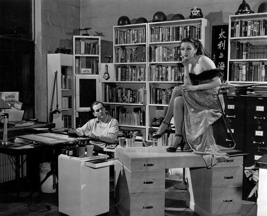 | Milton Caniff with actress Carol Ohmart, the model for Copper Calhoun |