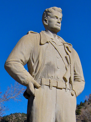 It was so important back then but today the significance of the Steve Canyon memorial has vanished. A few local old-timers may remember the heroic Steve but most residents and tourists probably have no idea who he was. Those who do know of him probably wonder what the hell a Steve Canyon monument is doing in Idaho Springs, Colorado. For me, the historic gold-mining town and the patriotic statue are a perfect match - symbols of the fleeting nature of life. Gutsy Idaho Springs and its faithful gray guardian are lucky to have grown old together.