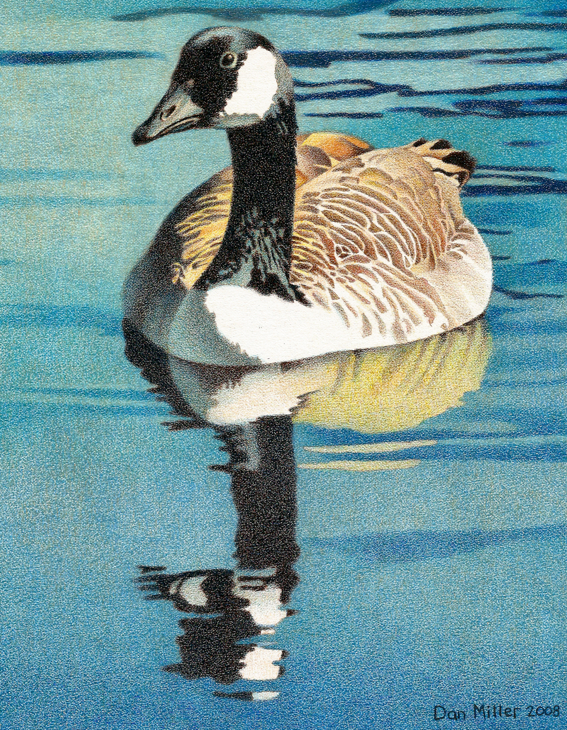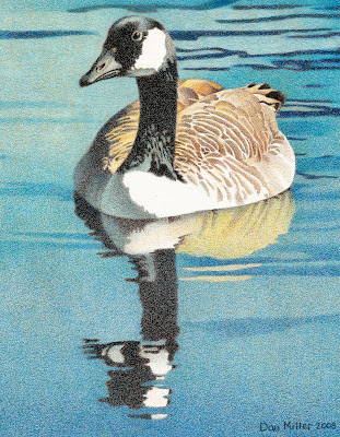 DeleteThe Canadian Goose is particularly striking to me. Photo-realism isn't necessary, but when an artist can get that close to life and then deviate, such as in using more solid colors here, it's very pleasant to my eyes.