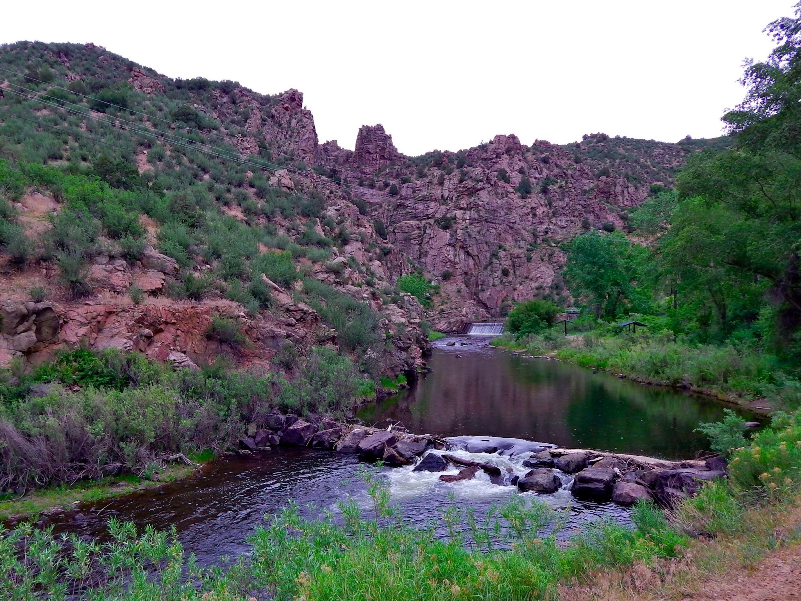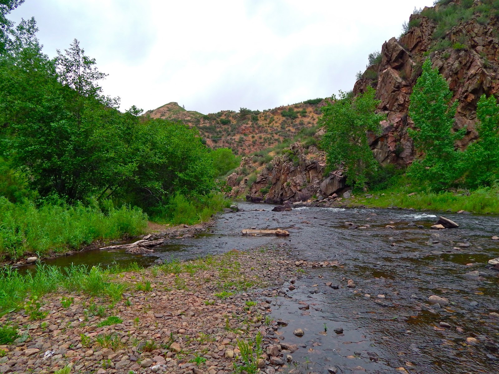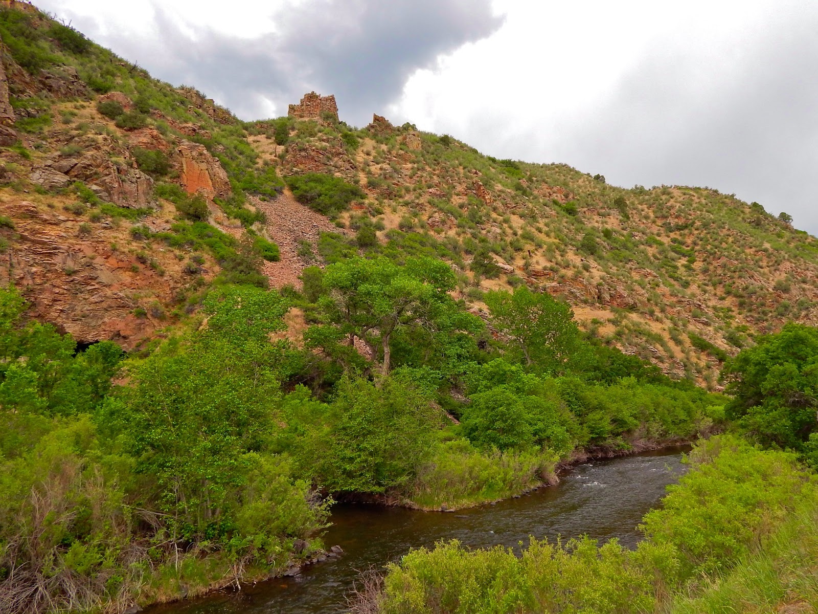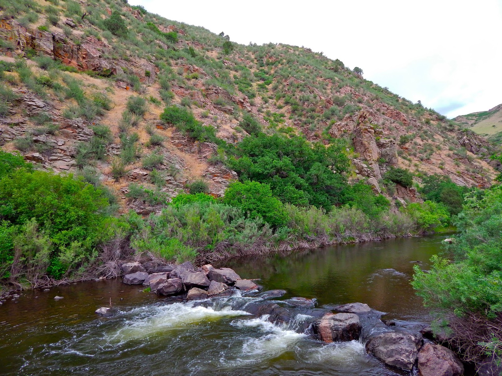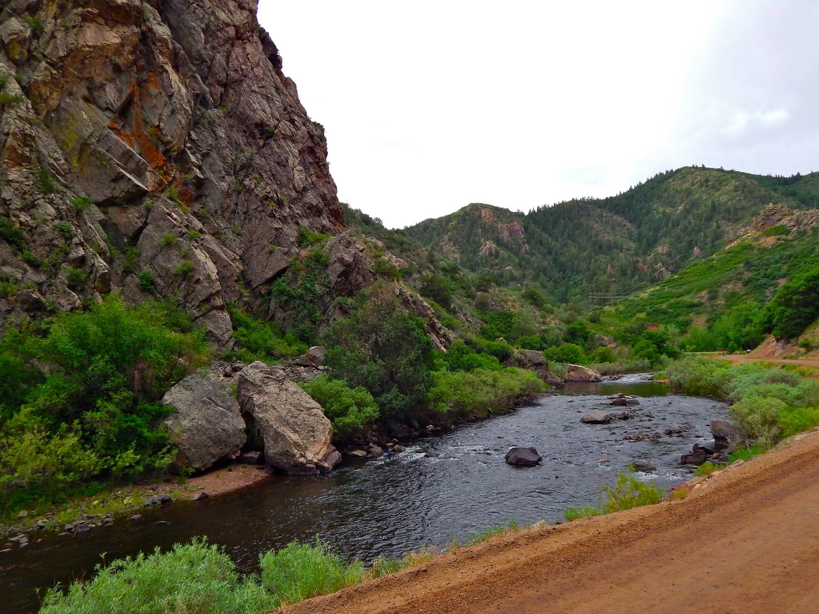 Just around the bend, water confined by an ancient dam was diverted through a tunnel and into the Highline Canal. We proceeded into Pike National Forest hoping to see the resident bighorn sheep but it started to rain. Trying to stay ahead of the storm, we hustled back to the trailhead but the much needed rainfall thoroughly soaked us. Nevertheless, we dried out quickly upon re-entering the land of lizards, fire and sun.