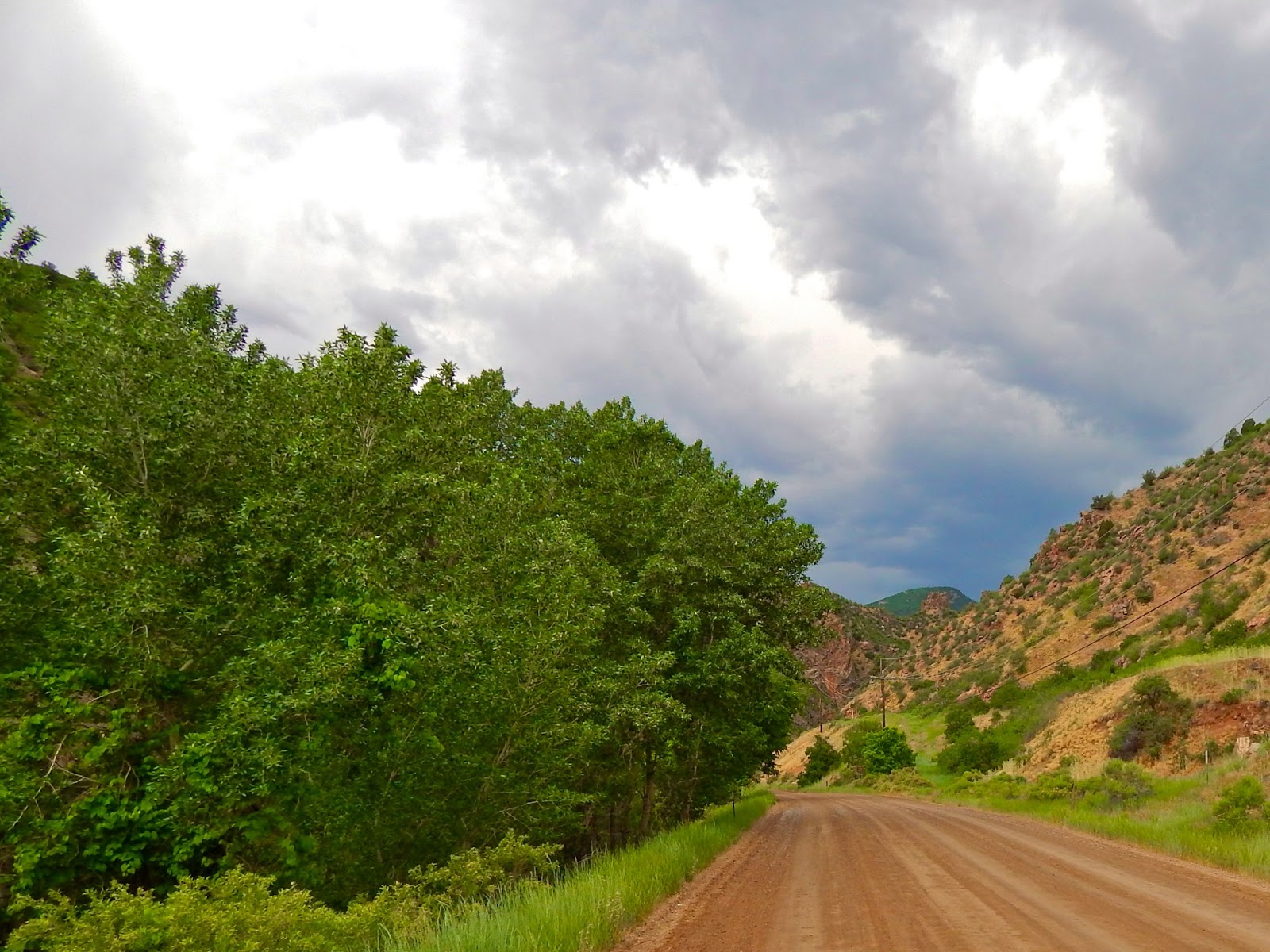 We approached the rocky corridor during a late June blizzard. Flakes of white, cottony seeds from gnarled cottonwood trees fell on us like a spring snowstorm. To the west, gray clouds foretold afternoon thunder showers so we picked up the pace. Before long, the steep, red walls had risen to one thousand feet. Dark-green shadows stretched across the narrow pathway.