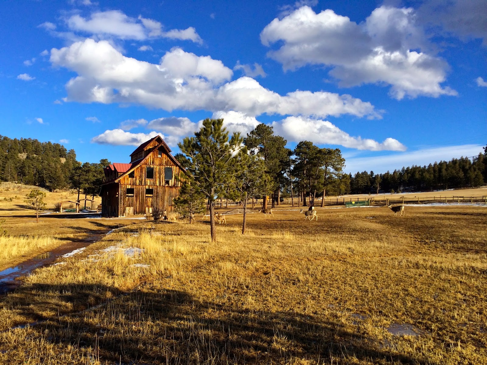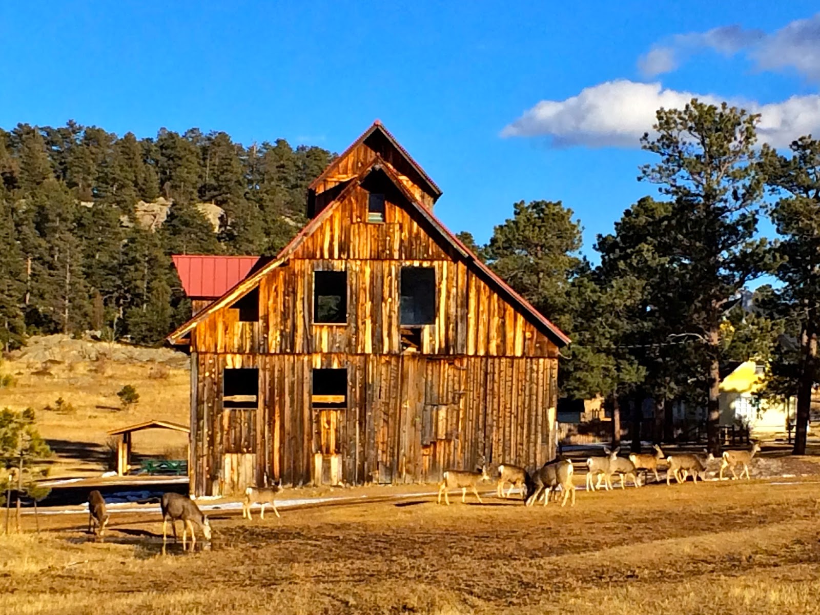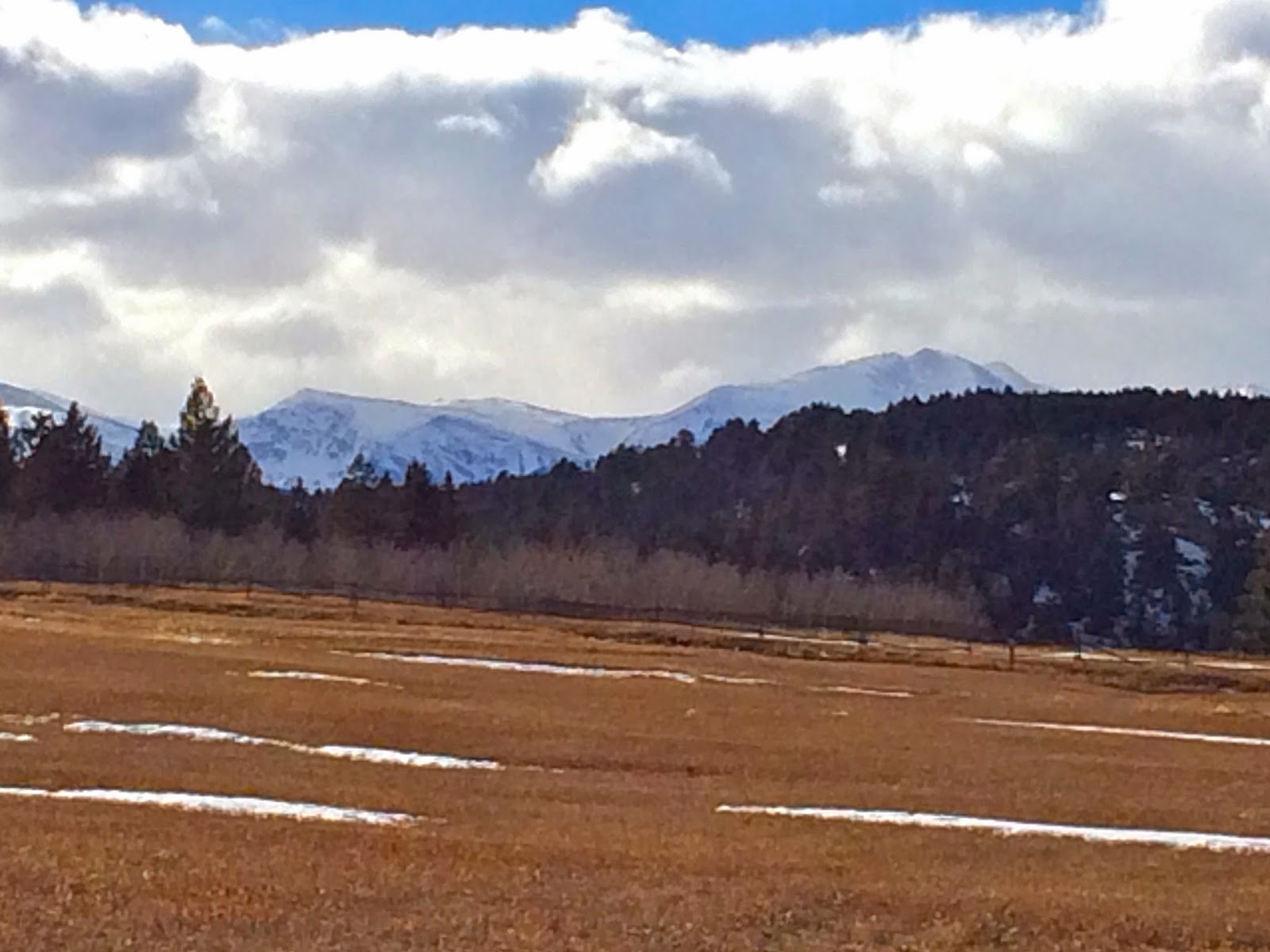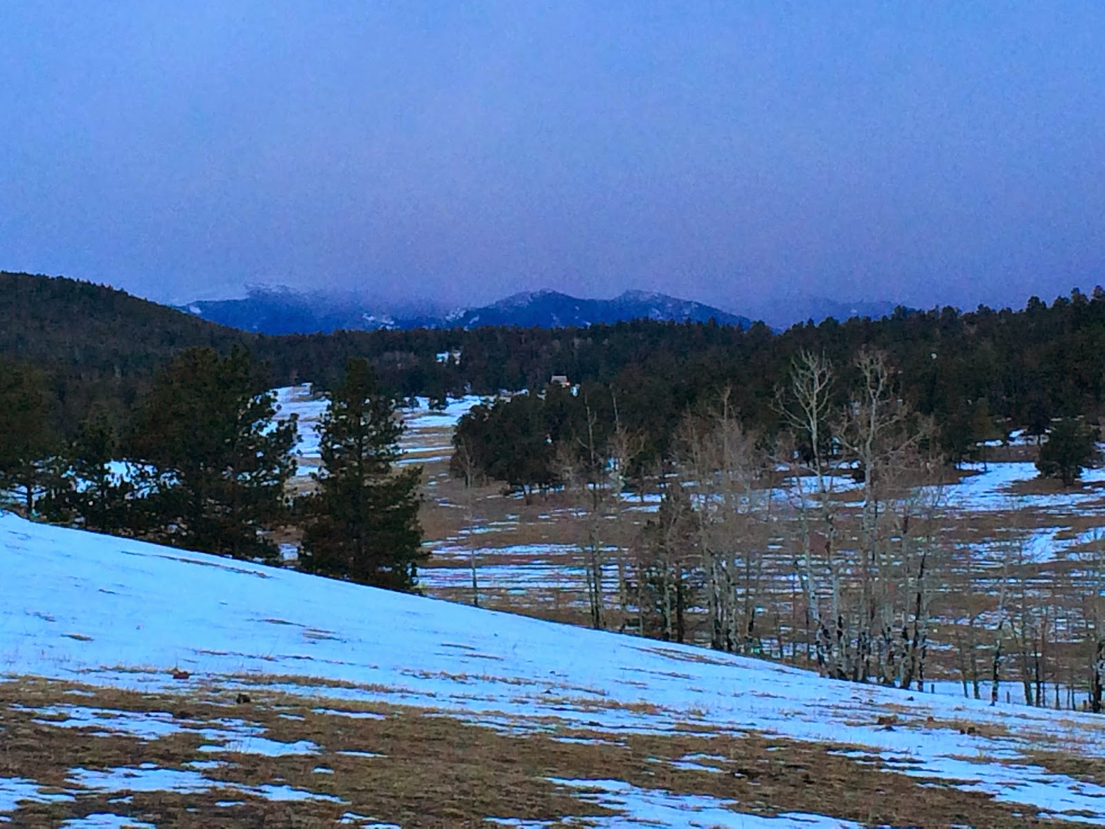 The evening's events are routine. Black crows gather in the yellow stubble while a herd of wary deer emerge from the dark forest. In the summer, this place is a lively meadow full of riotous wildflowers. In March, it's a bowl of broiling, back-built maelstroms that bury the foothills in heaps of heavy snow.