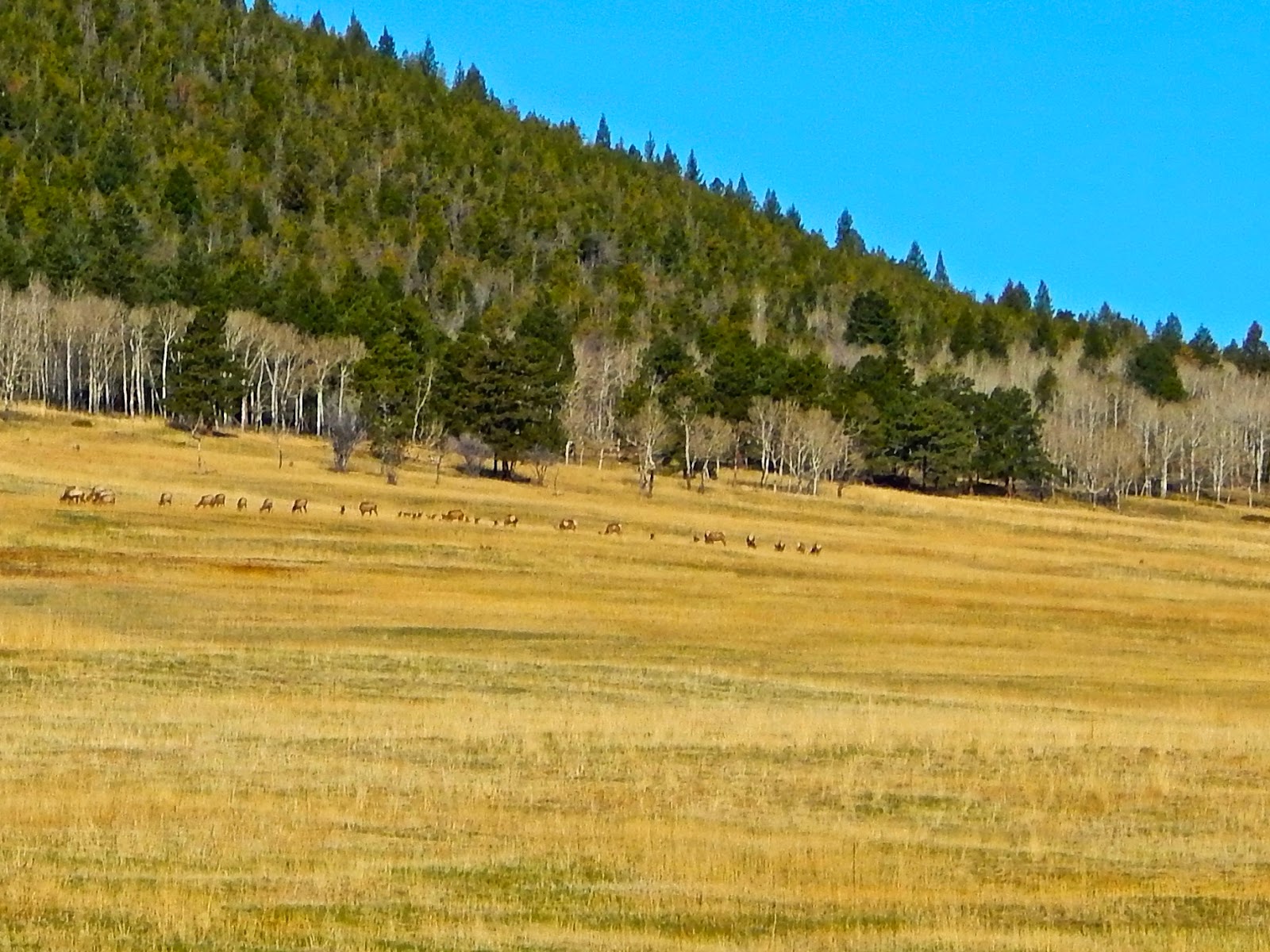 | Bare aspen and grazing elk |