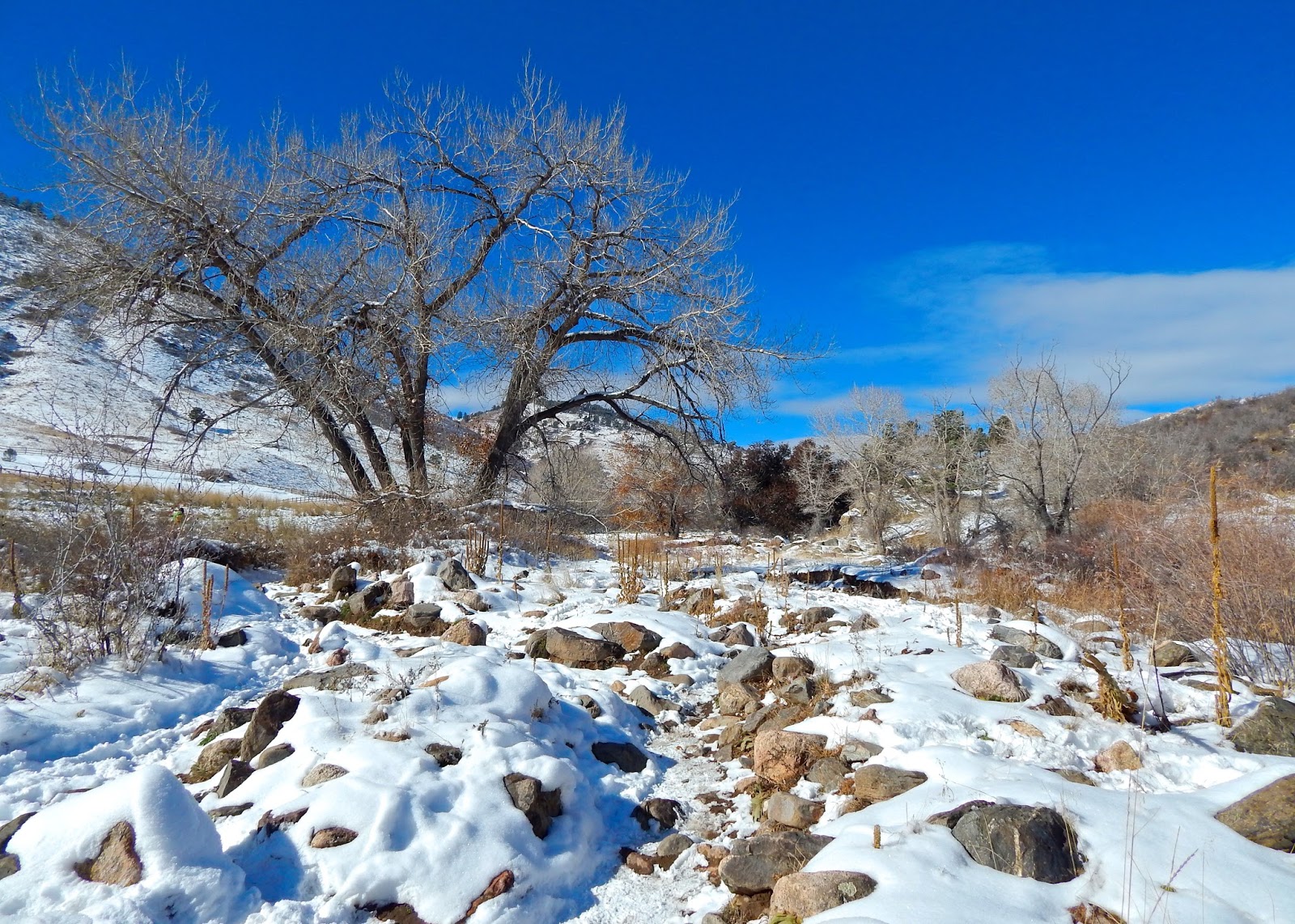 | Frosted boulders and a frozen stream |