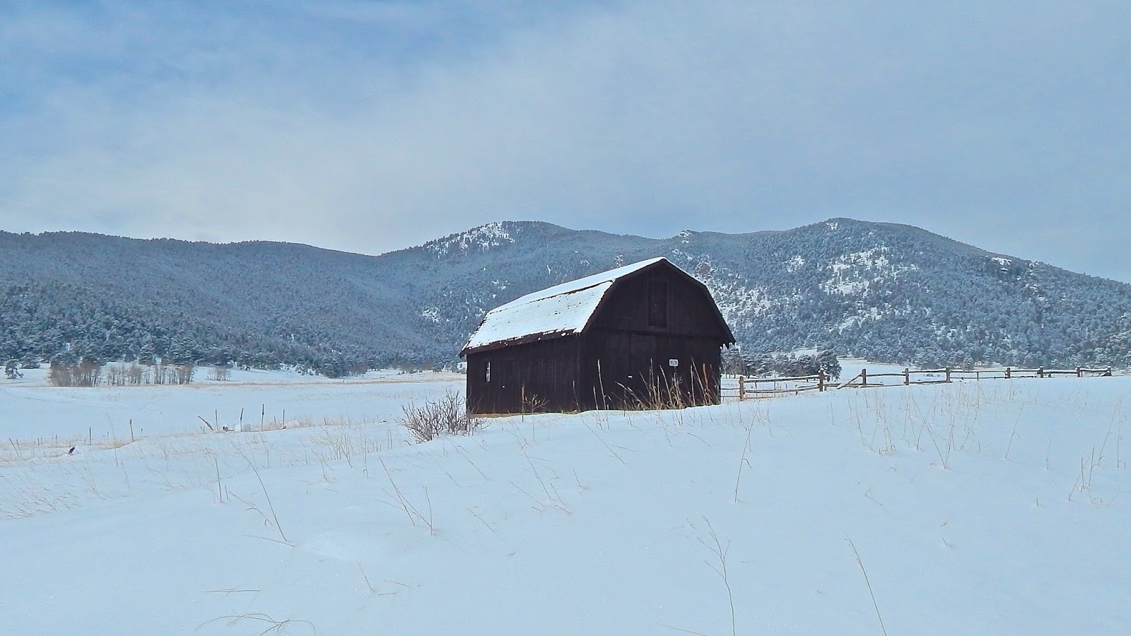 A dark note set within a sea of snow, an old barn drew the photographer's attention. Built back in the 1800s, the faithful stable has become a scenic symbol for the town's steadfast spirit.