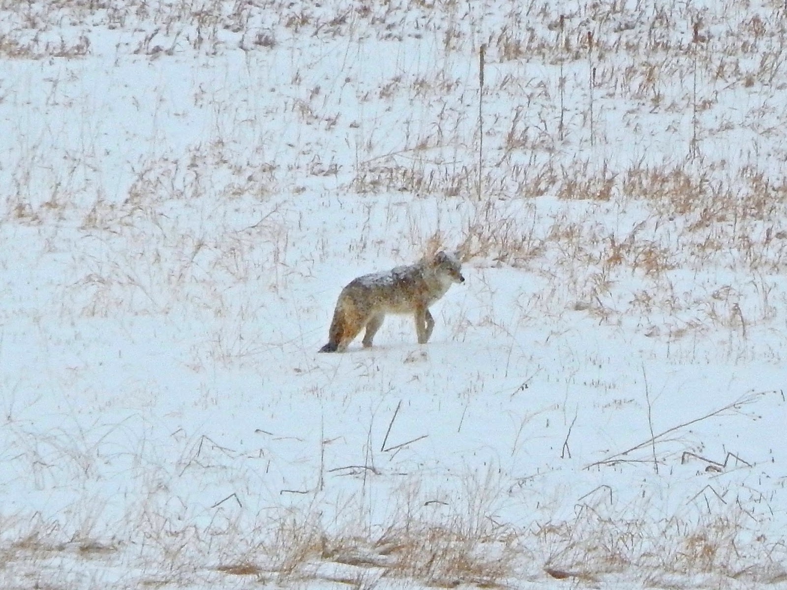Still too early for birds to be back, our only companion in the white wilderness was a clever coyote. After a gloomy week of miserable weather, an exuberant sky was sprinkled with powder blue.