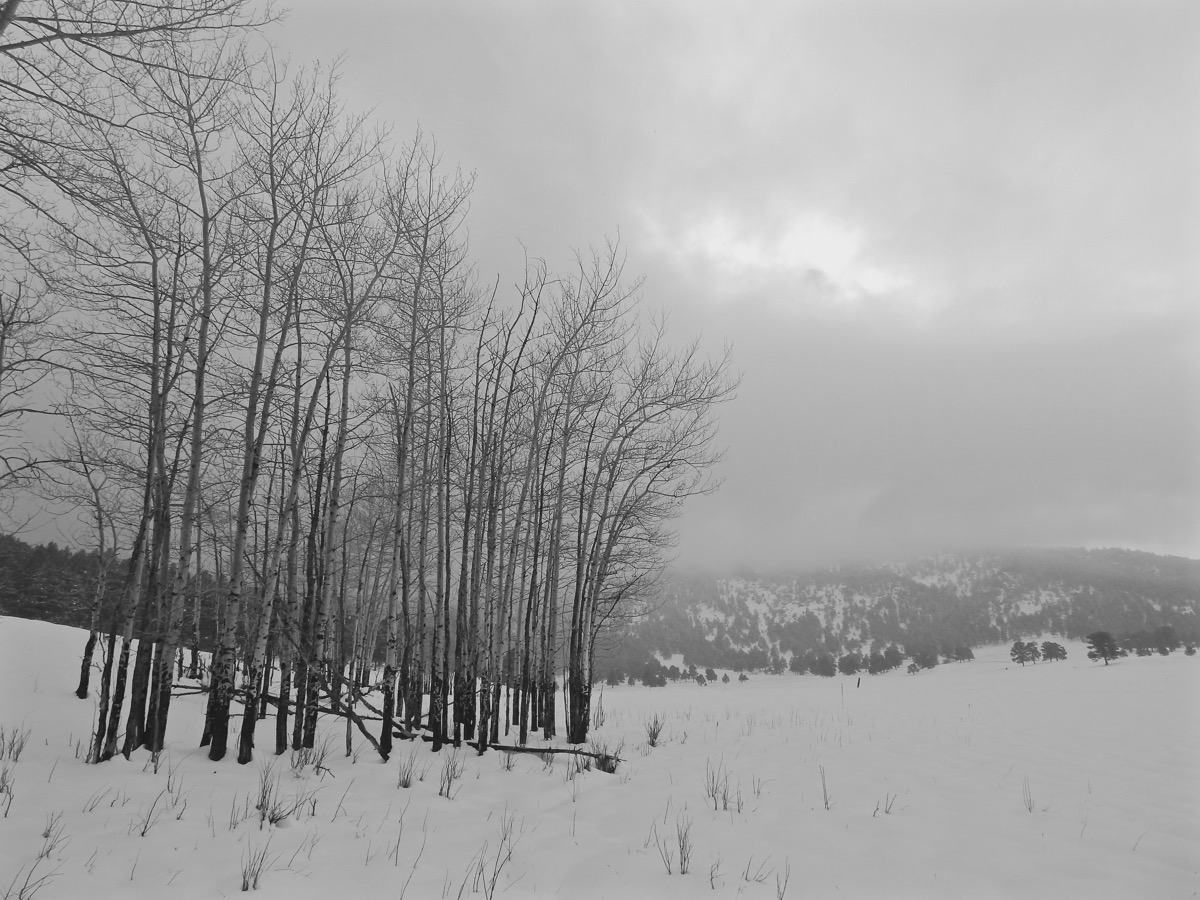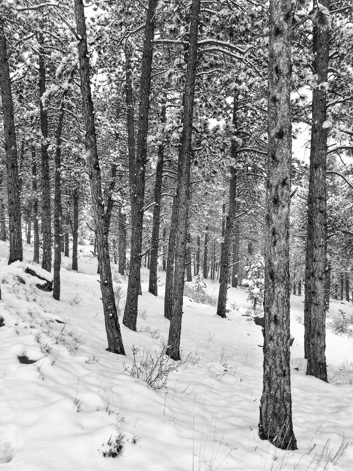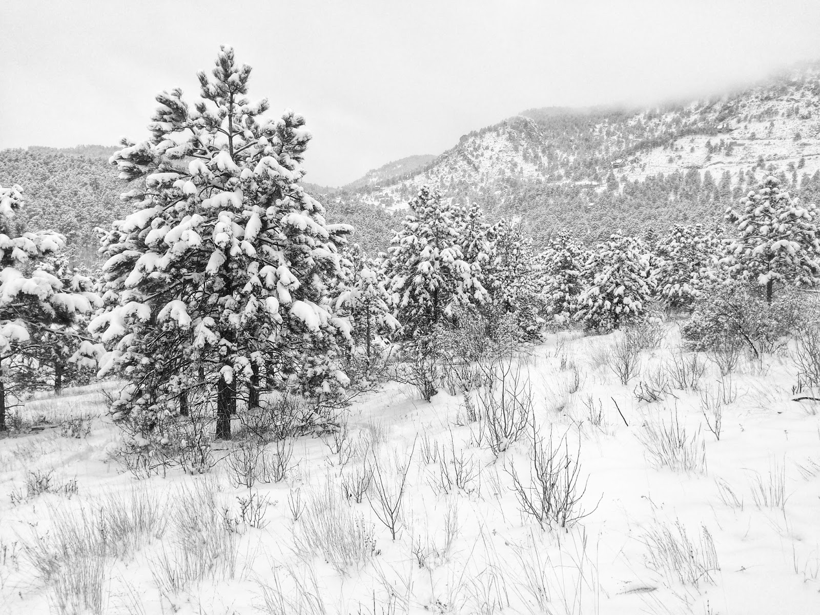 The monochrome maelstrom brought much needed moisture to the mountains and composed a magnificent landscape etched in black and white. Pale peaks melted into a misty atmosphere while the forest featured vertical patterns of textured trees.