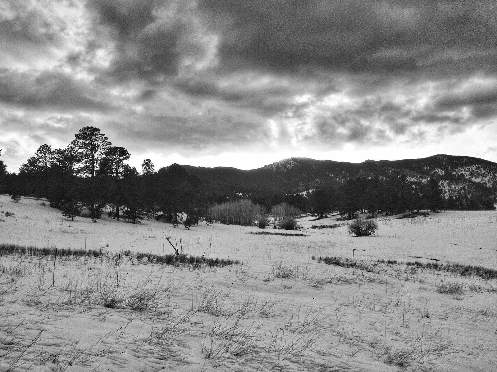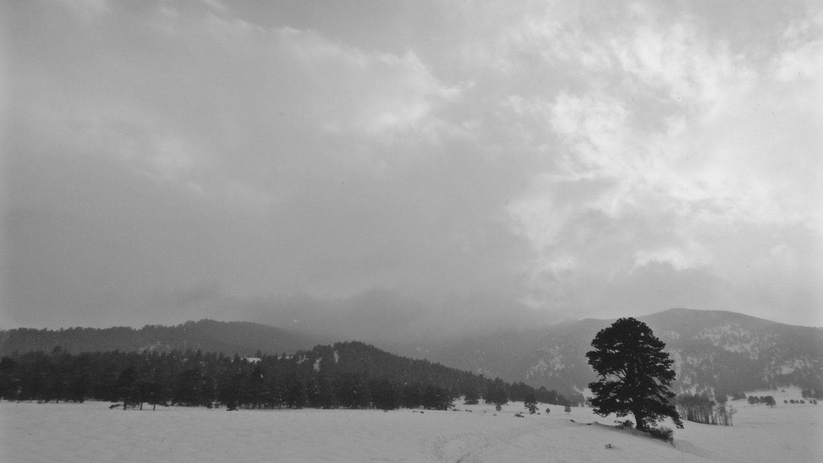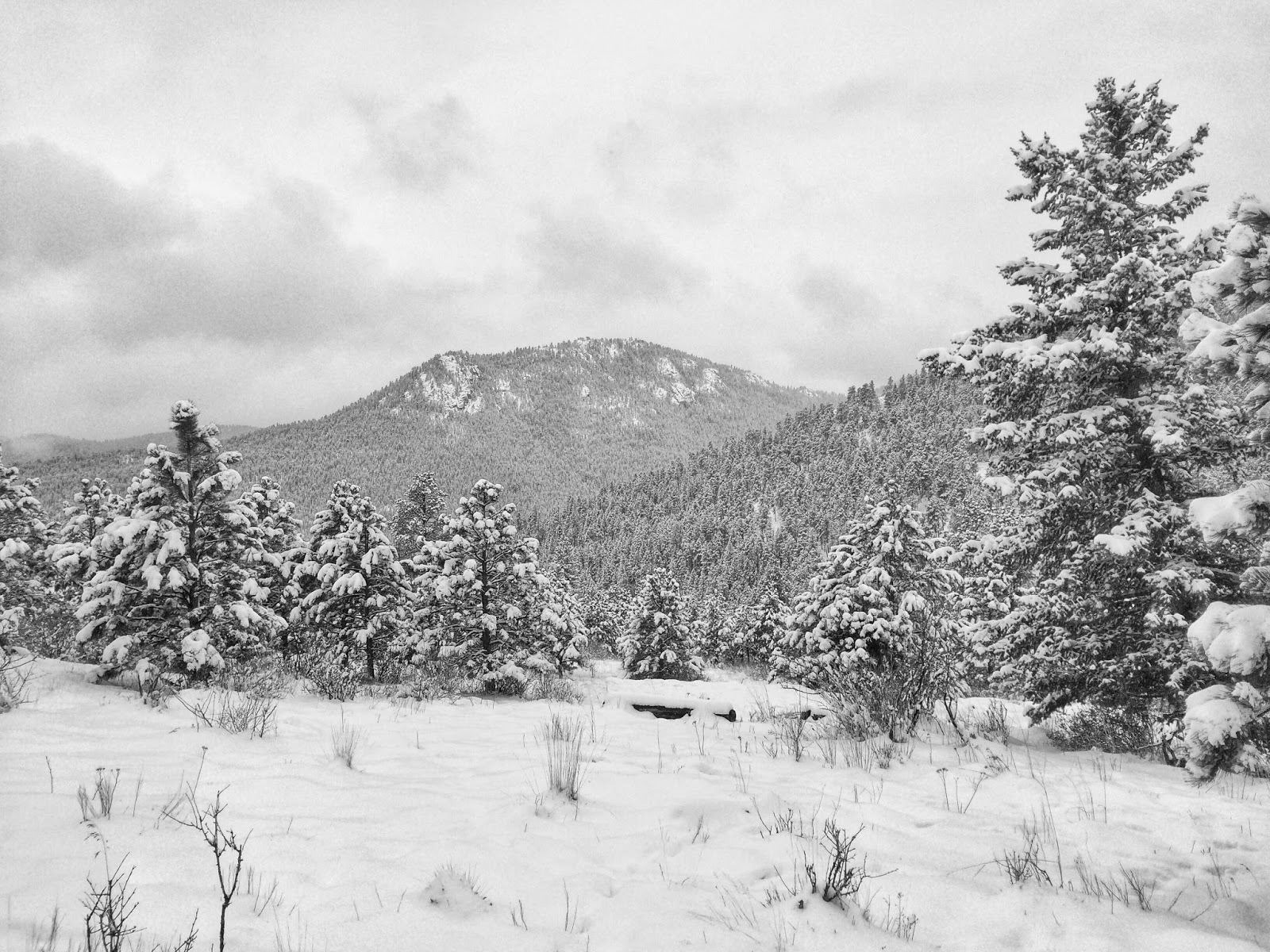 The monochrome maelstrom brought much needed moisture to the mountains and composed a magnificent landscape etched in black and white. Pale peaks melted into a misty atmosphere while the forest featured vertical patterns of textured trees.