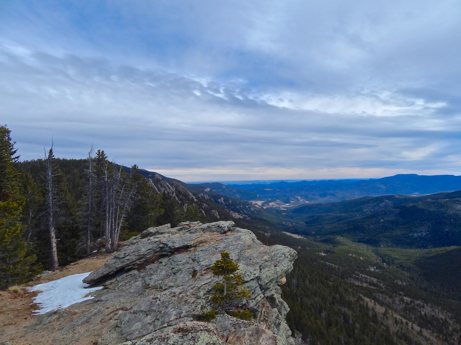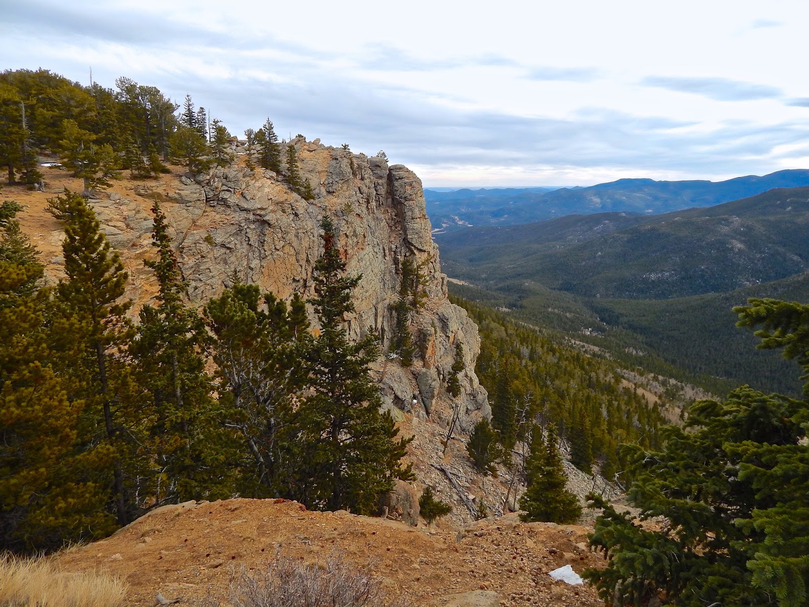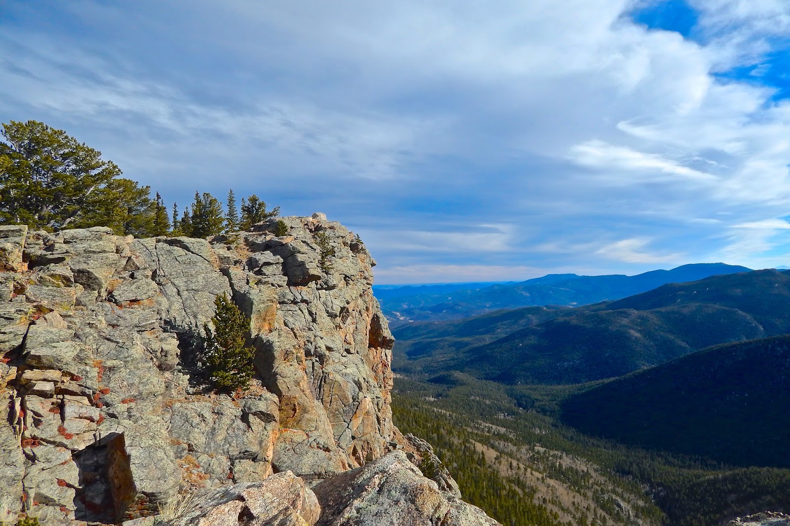 A narrow strip of spruce and fir forest clings to the sheer headwall while stately cypresses of juniper decorate the edge of this rugged realm. Scrambling across this exposed ridge in the open air is a harrowing experience.