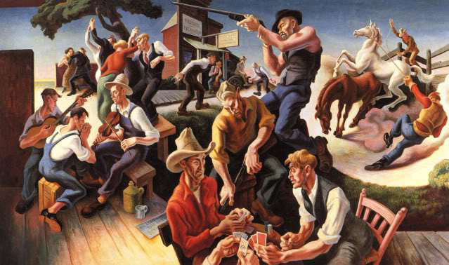 Benton eventually embraced his natural style and became inspired by the music, folk tales and working class of rural America. Along with Grant Wood and John Steuart Curry, he co-founded the realist art movement known as Regionalism.