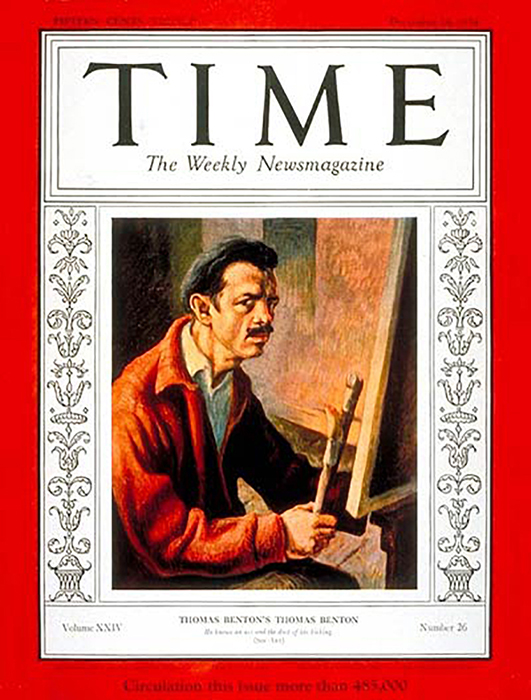 Benton’s large-scale, historically-themed paintings were controversial but they also garnered him great notoriety as a muralist. In the mid 1930s, Thomas Hart Benton appeared on the cover of Time Magazine and was probably the most popular artist working in America.