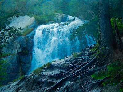 Upon arriving at the demonic destination, you are showered with cold water and a deafening roar. You must proceed with caution near this treacherous torrent or risk being swept into the steep abyss.