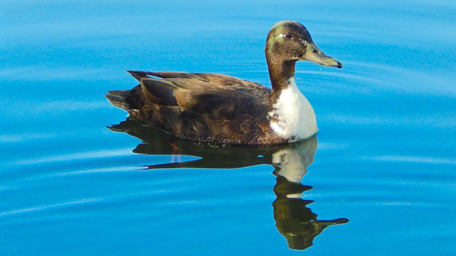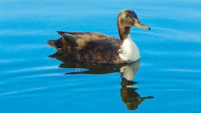 Now yellow in the afternoon, the place really starts to heat up. Under a cloudless sky, purple-headed ducks seem content to float across the placid pond.