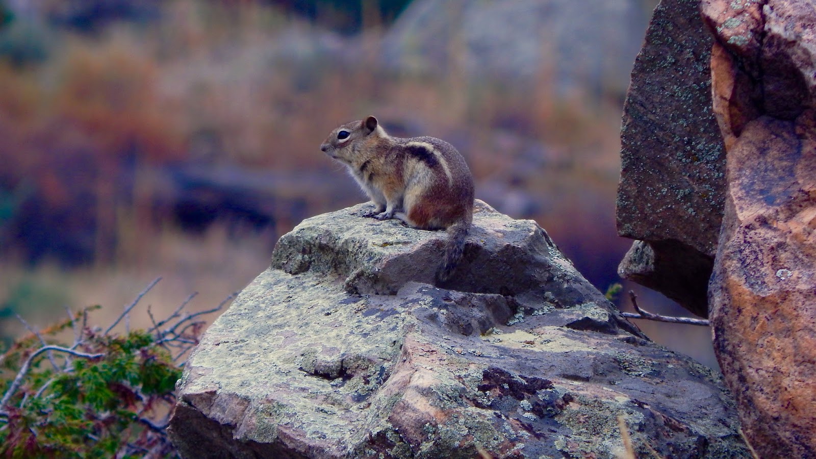 Because they share the same ecosystem and physical features, he is often confused with the Colorado chipmunk. The golden-mantled is easily distinguished, though, as he lacks the facial striping so prominent in his smaller cousin.