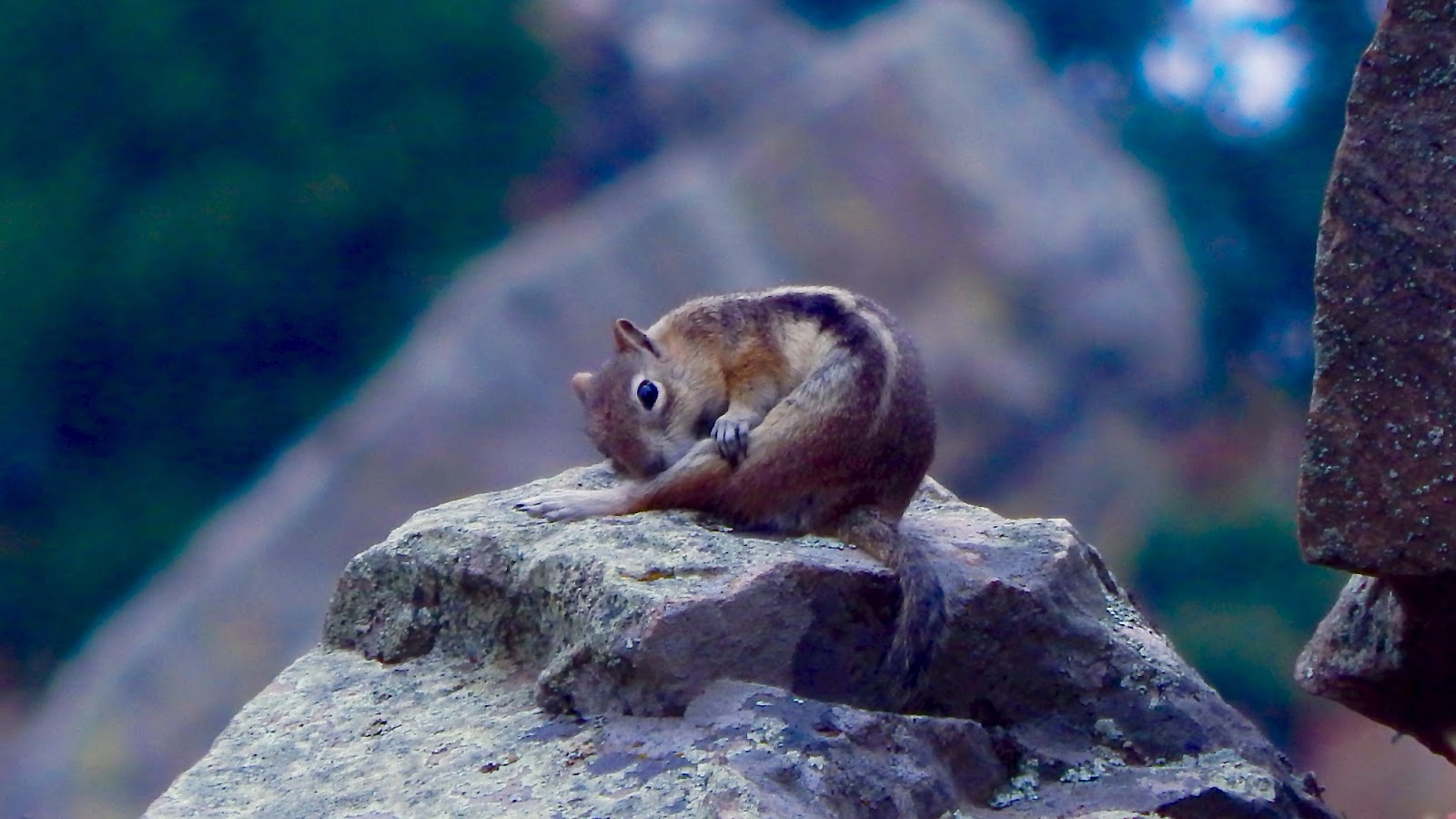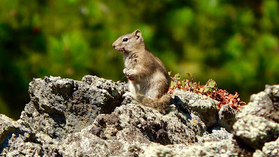 Always alert, he’s an inquisitive animal that seems to tolerate a peaceful approach. For this rockhound of a rodent, summers are spent lying about in the sun while fall becomes more frenzied as he must fatten up for a five month hibernation.