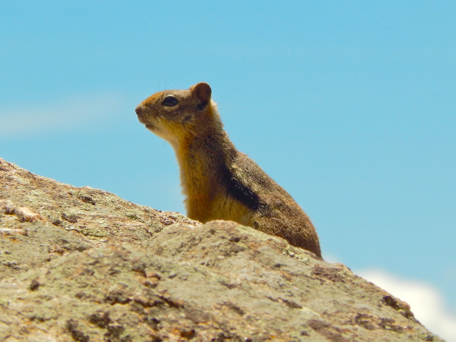 Because they share the same ecosystem and physical features, he is often confused with the Colorado chipmunk. The golden-mantled is easily distinguished, though, as he lacks the facial striping so prominent in his smaller cousin.