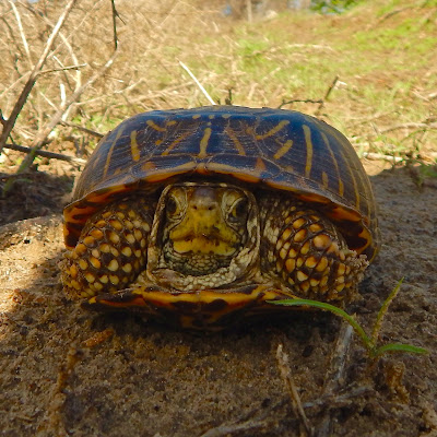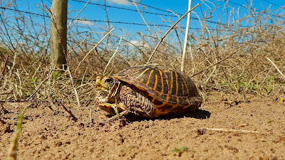 Like most reptiles, his daily activities revolve around thermoregulation. Mornings are spent warming up in the sun but during the hottest part of the day, he rests in the shade. Drawn back out by cool temps, he's probably most active in the evening.