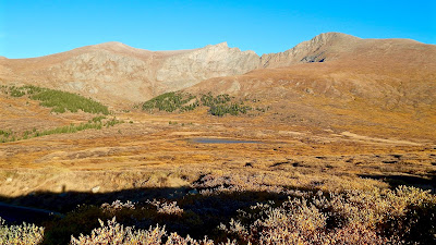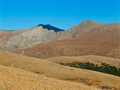 Dusk is an unquestionable signal that it’s time to depart without delay. As the low light softens the scenery and shines a spotlight on the spectacular peaks to the east, a few fluffy clouds cast curious shadows across Mount Bierstadt and the jagged Sawtooth Ridge.