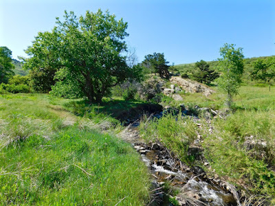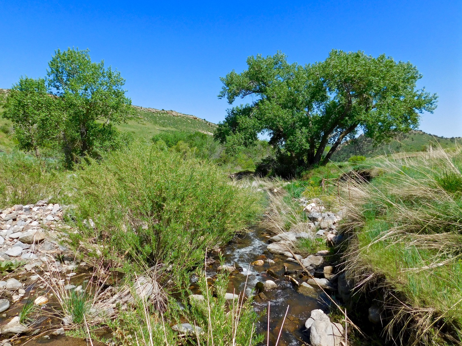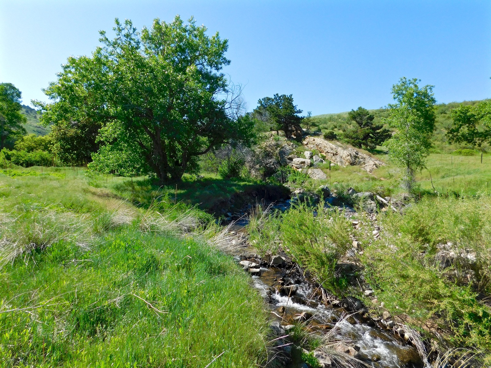 It’s really hot and dry down at White Ranch Park in Golden, Colorado. Van Bibber Creek is running low and slow as the rocky watercourse cascades through a grassy, green gulch.