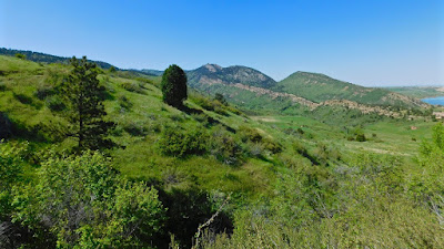 During the climb, a looping traverse opens up and offers sweeping views across an impressive valley. To the right is Ralston Reservoir and the Hogback is an arched ridge connecting a rugged rock formation known as the Devil’s Thumb.