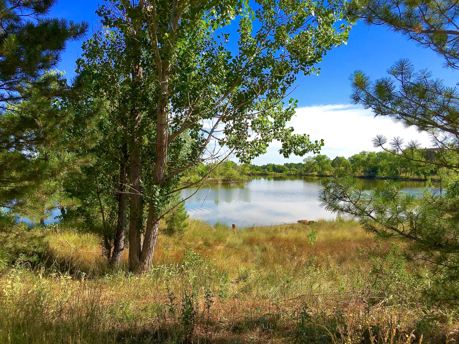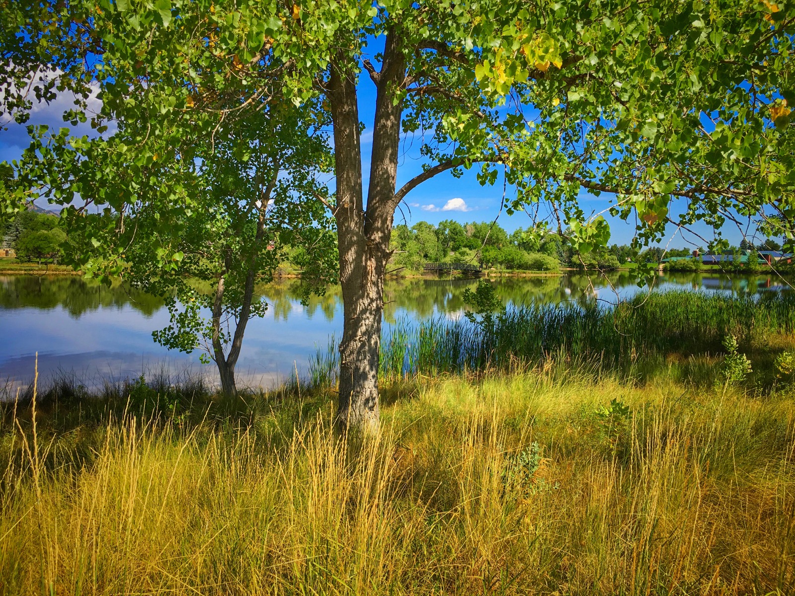 Viele Lake is a pretty reflecting pool located below Fairview High School in Boulder, Colorado. The man-made reservoir is an urban oasis that clearly attracts lots of people.