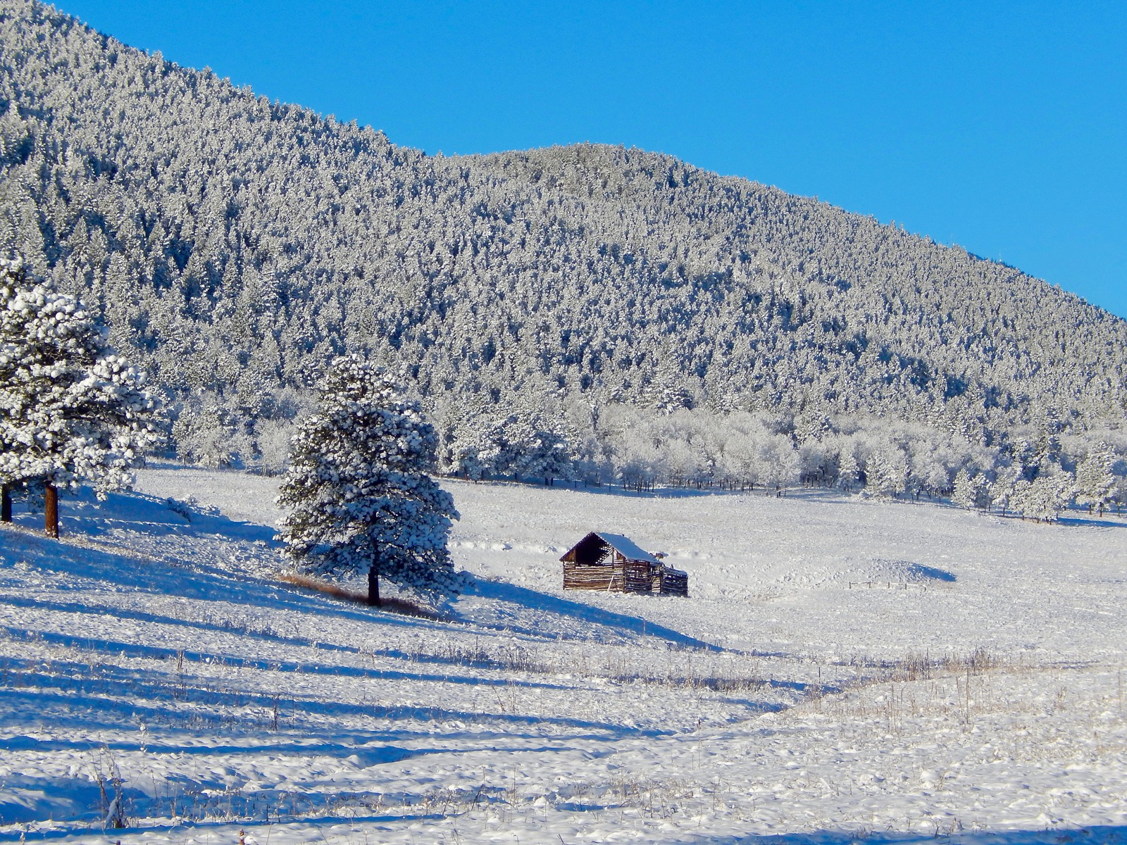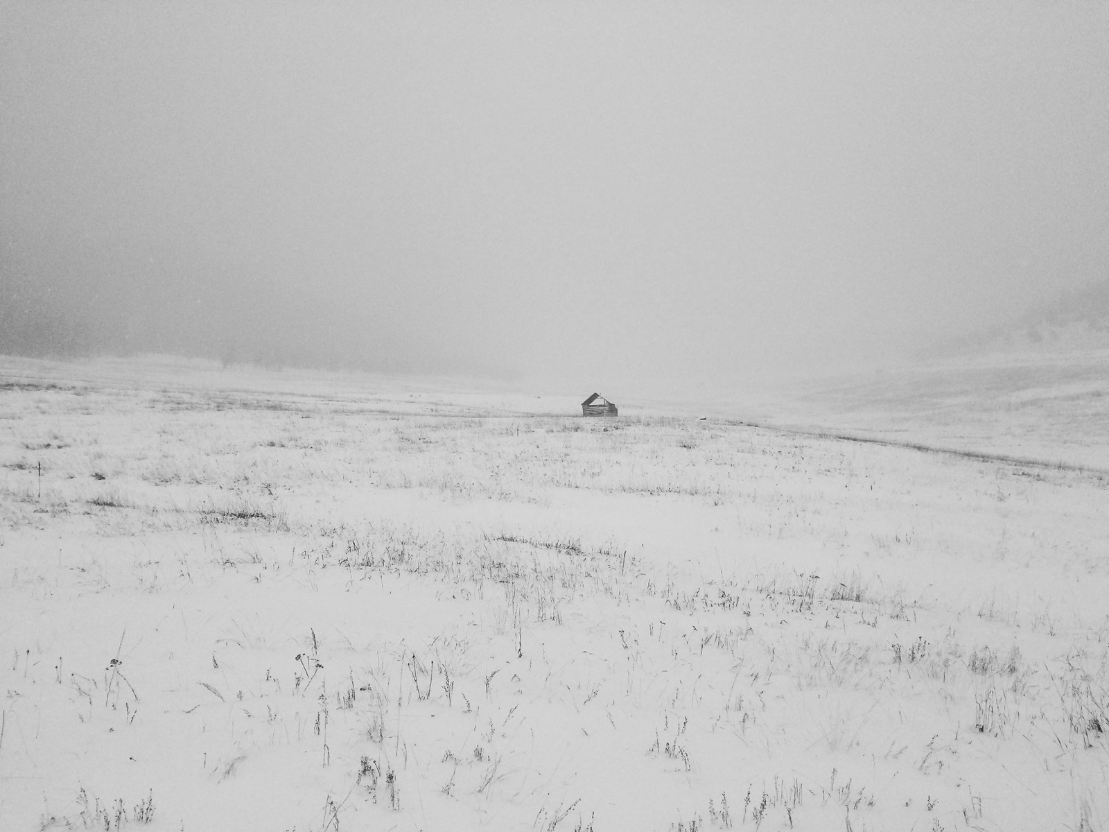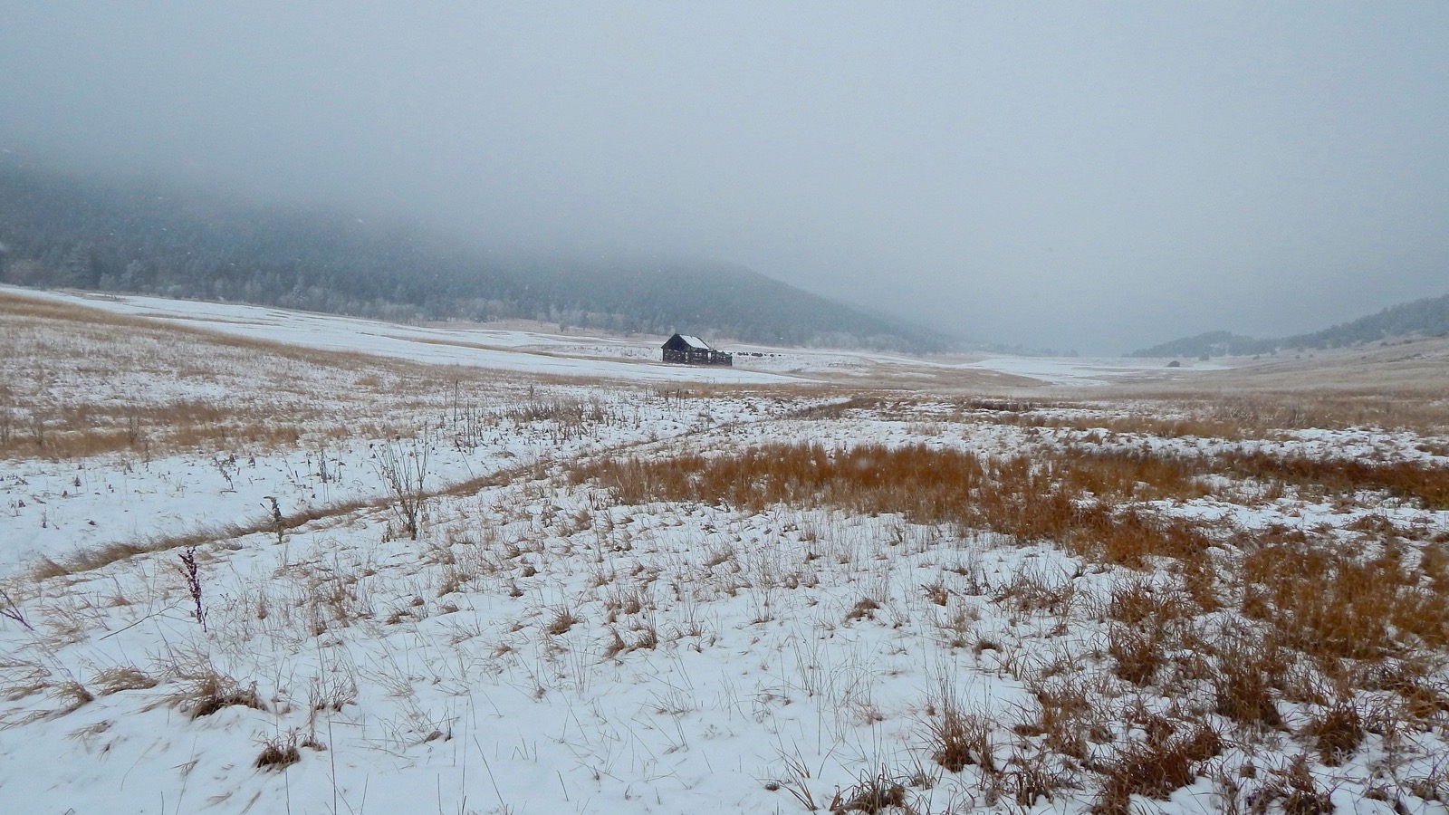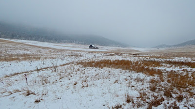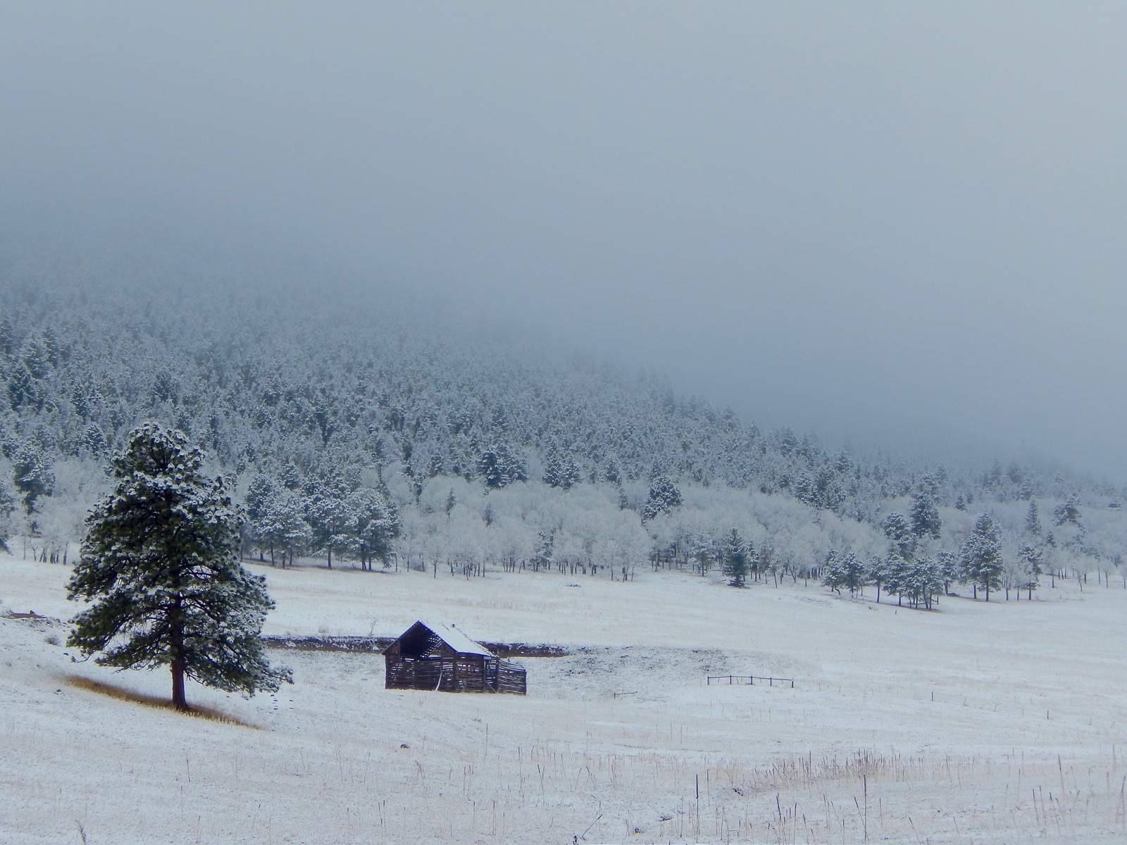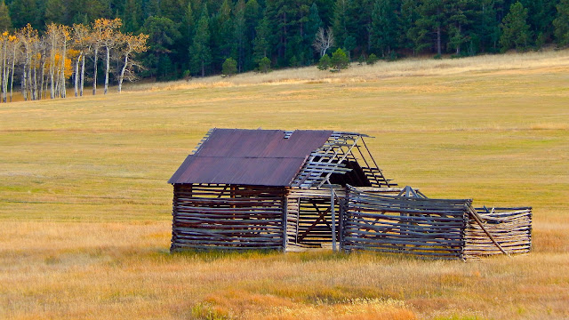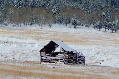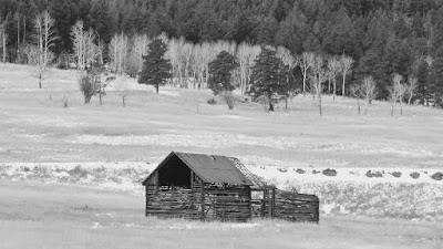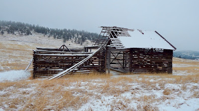 Taking the brunt of arriving storms, the western wall is in shambles from the force of heavy snow. Just like an old bull elk after the rut, the weather-beaten barn makes its lonely winter stand on a windswept hillside.