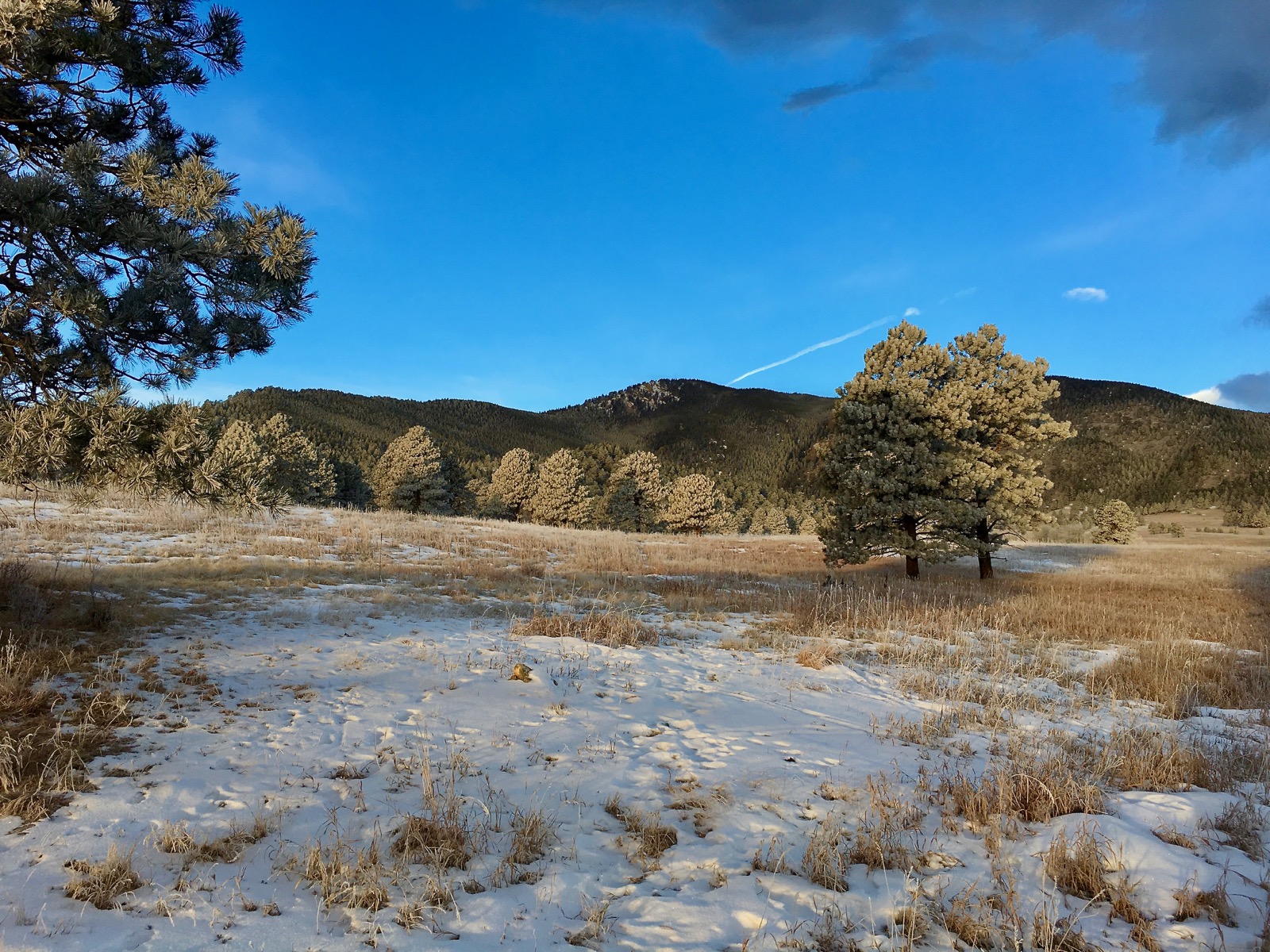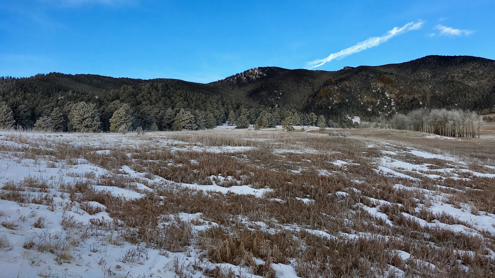 It’s a frigid morning in Evergreen, Colorado and Bergen Peak forms a dark backdrop, brooding over a lonely meadow. A strange ambiance engulfs the landscape as morning light struggles to leak through the dense atmosphere.