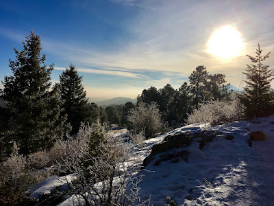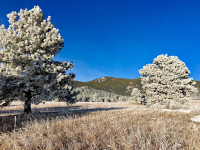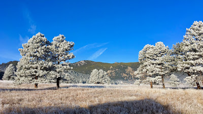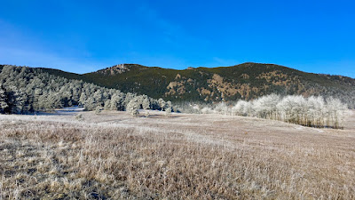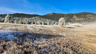 After slogging through a long week surrounded by a dusky landscape, clouds have parted revealing a blue Friday. It's a wonderful time to be in the mountains enveloped by my favorite color cast.