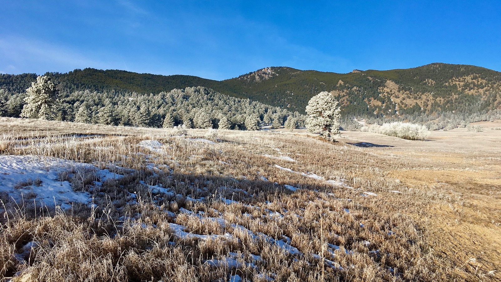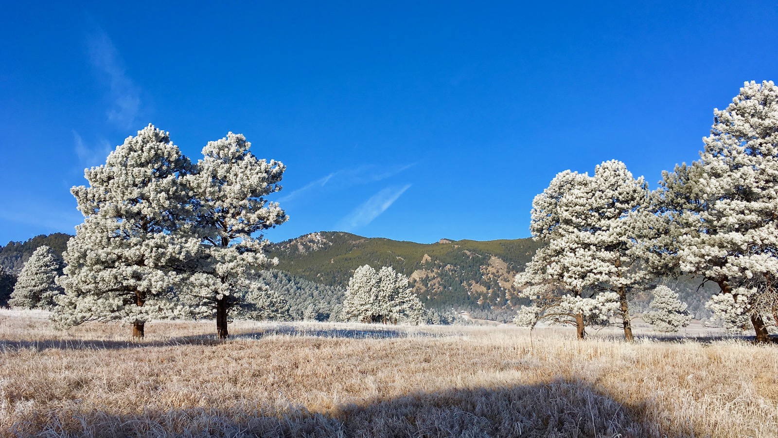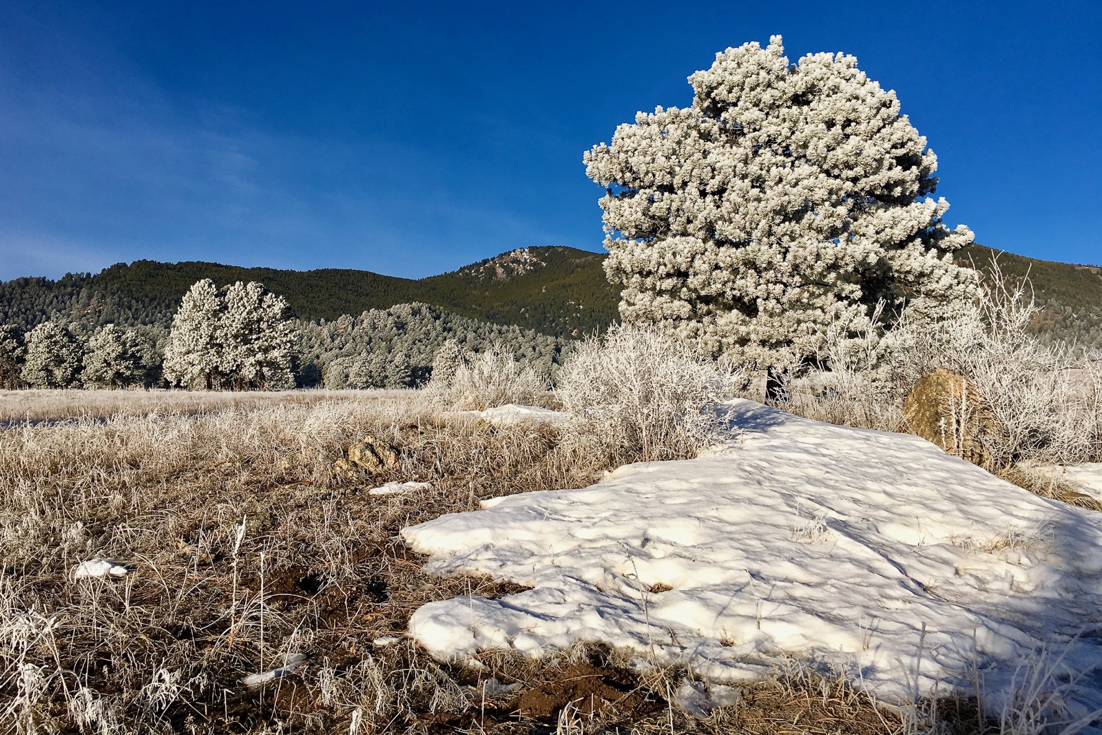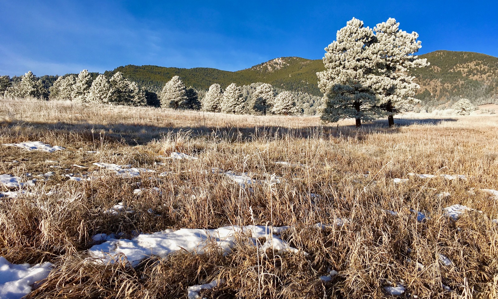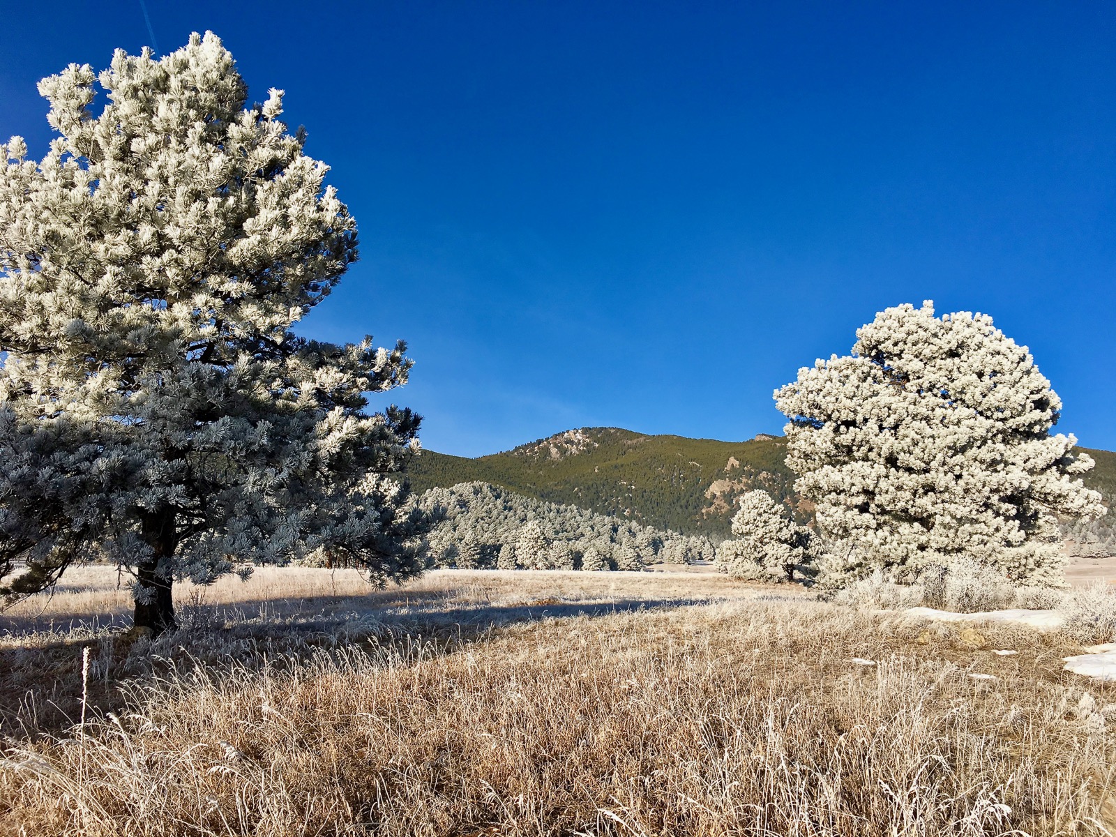 Swirling, pale pine are scattered throughout the meadow offering a fine foreground below Bergen Peak. The cool tones are usually reserved for a more somber setting but on this day, they express a joyful mood.