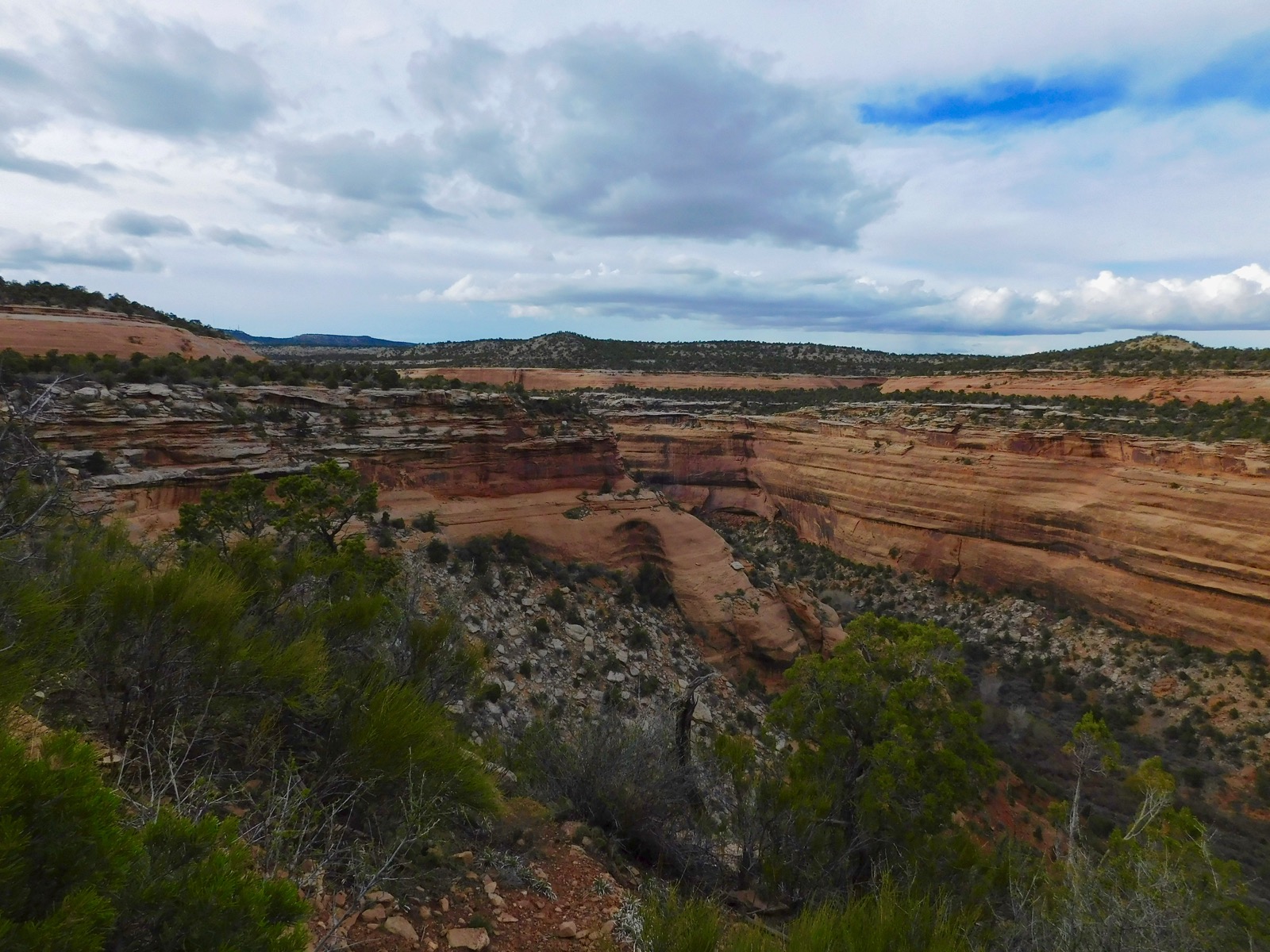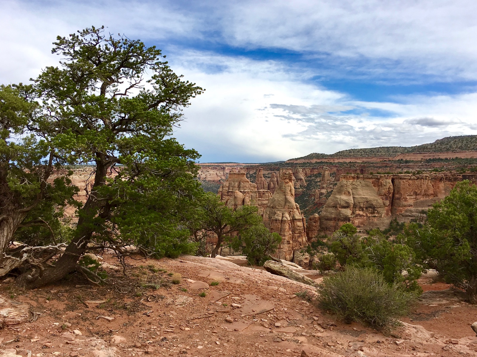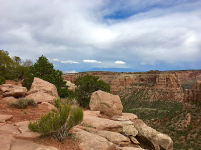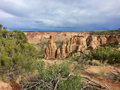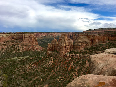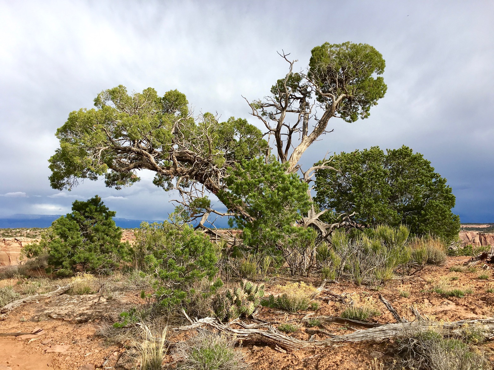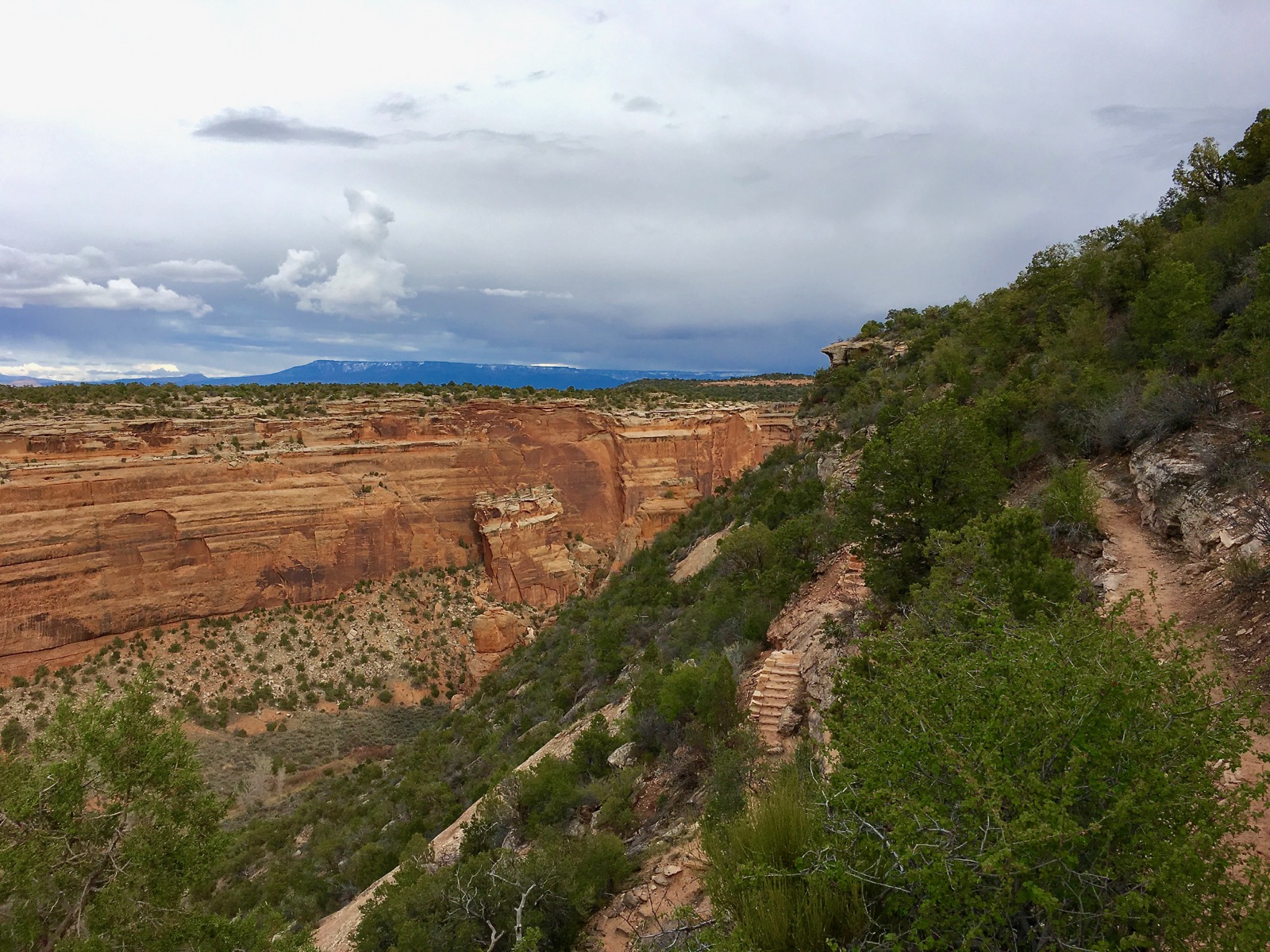 During an evening hike on the heels of a passing Spring storm, beams of soft light come streaming through the steel-gray clouds. While following a broken trail that skirts the chasm’s rim, Monument Canyon is the main attraction but the distant Book Cliffs and Grand Mesa are impressive as well.