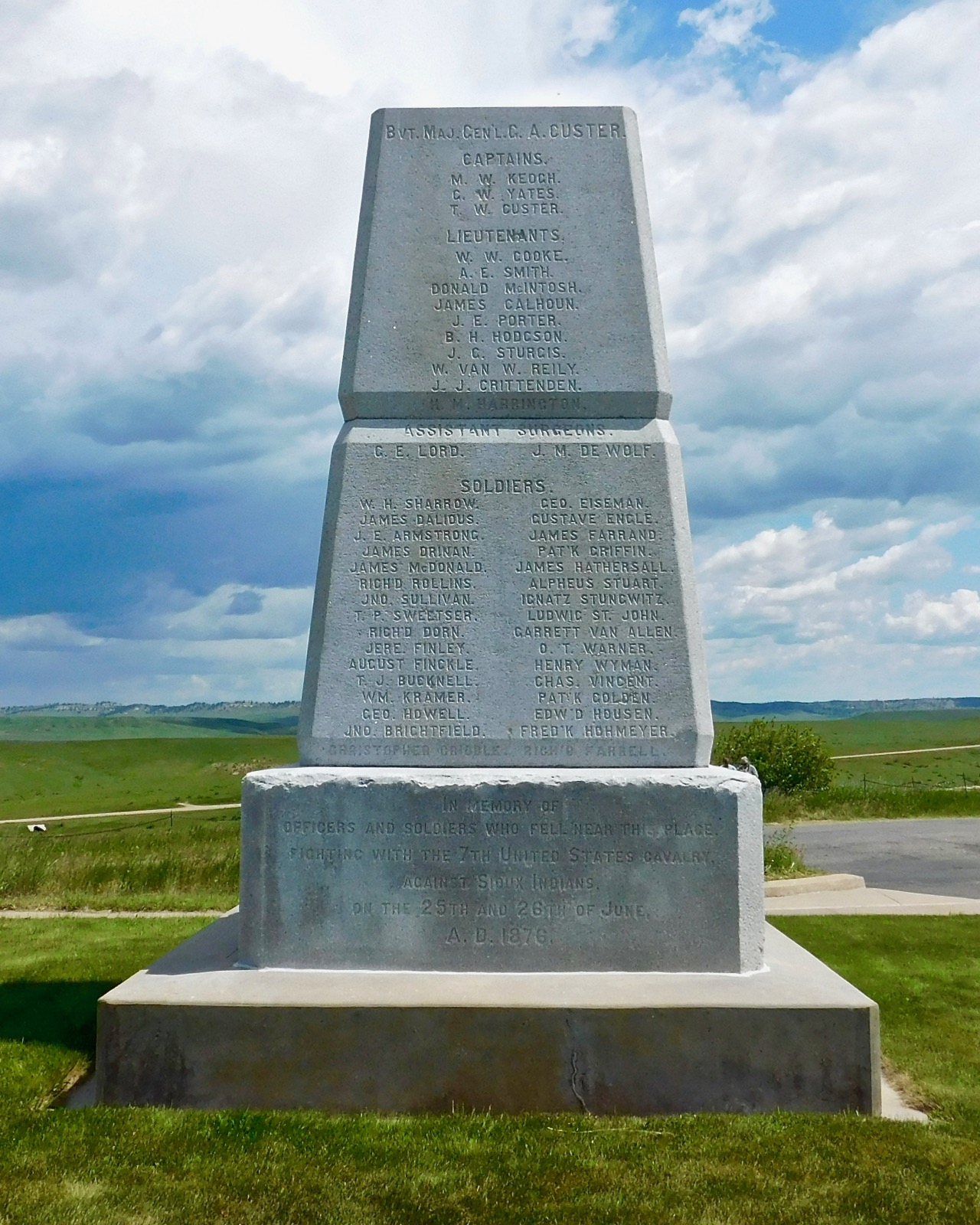 Replacing that cordwood structure, a permanent granite monument was erected in 1881 by First Lieutenant Charles Roe. All of the soldiers remains were gathered and placed in a mass grave built around the base of the new monument.