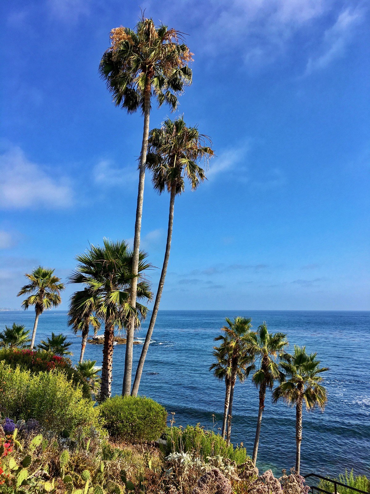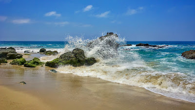 I've only experienced the Pacific while in southern California where a blue-green surf smashes into the rocks and cliffs, sculpting a coastline of unsurpassed beauty. The exotic foliage of palm trees and colorful wildflowers enlivens the laid back atmosphere.
