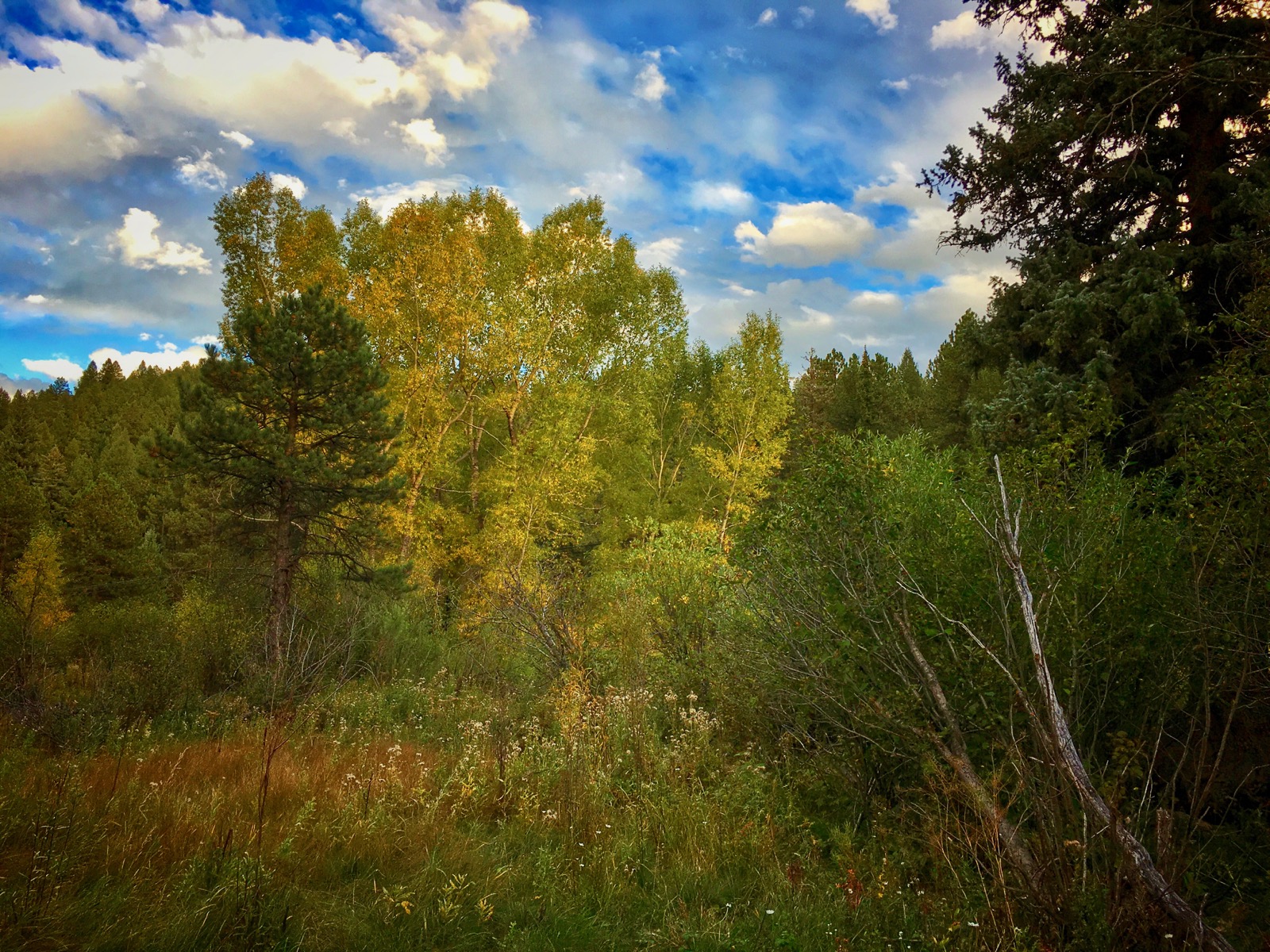 A discreet canyon covered with towering pine and spruce encompasses the winding waterway. While wandering along the wide rim, the setting sun's warm rays penetrate the forest's dark interior.