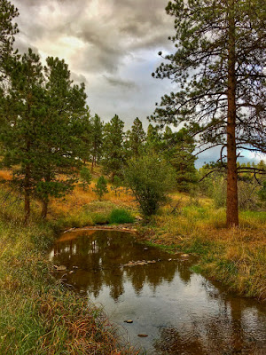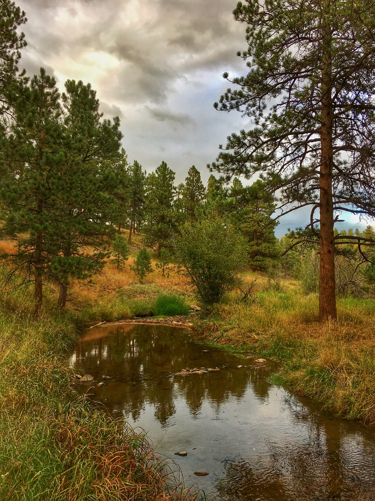 Sitting still in the crook of a wide s-curve, the shallow ravine is more like a reflecting pool than a restless torrent. The smooth pond of clear water mirrors the local arrangement with surprising clarity.