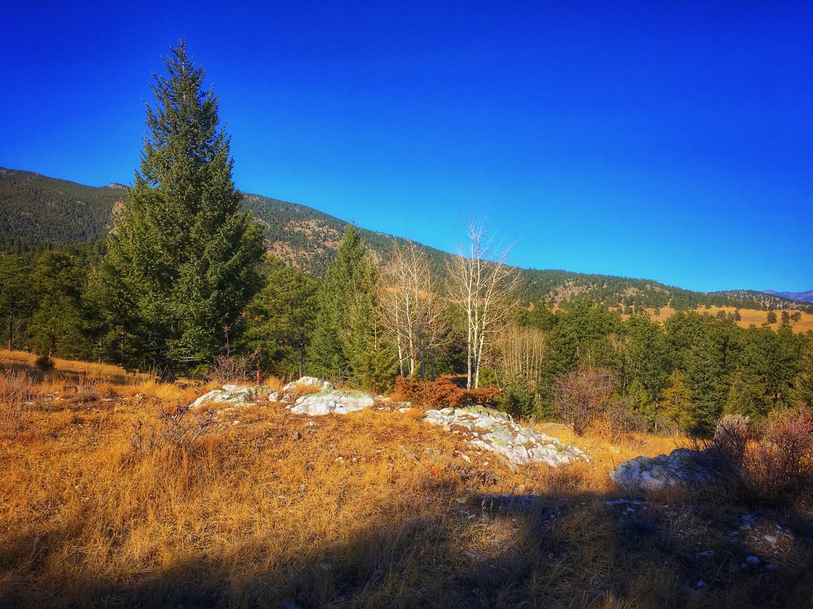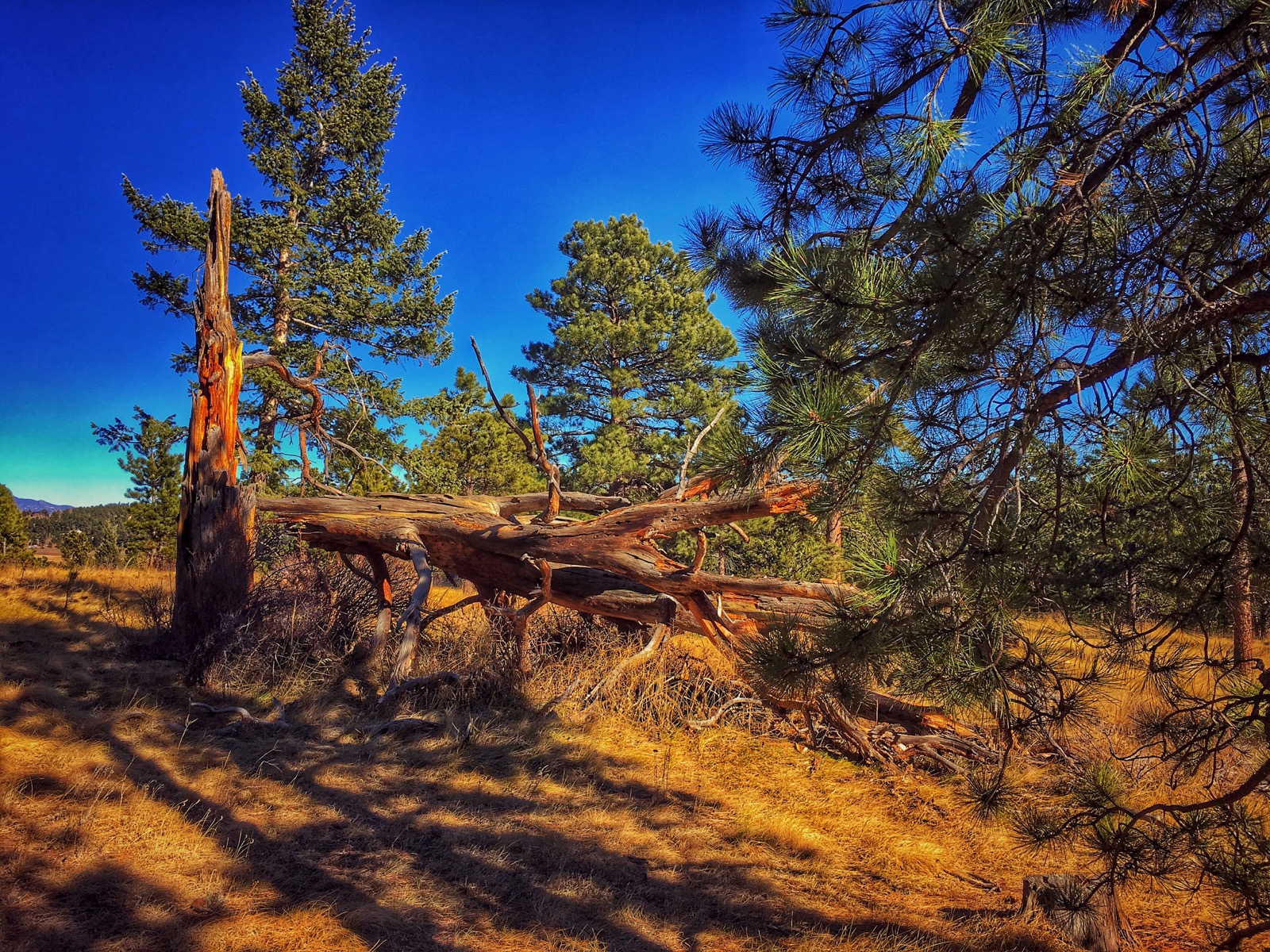 Out on the open ridge, a flood of yellow light streams through the atmosphere as if it were still summer. Back down on the golden plain, there’s a gradual elevation gain that can become a grind as the long hike comes to an end.