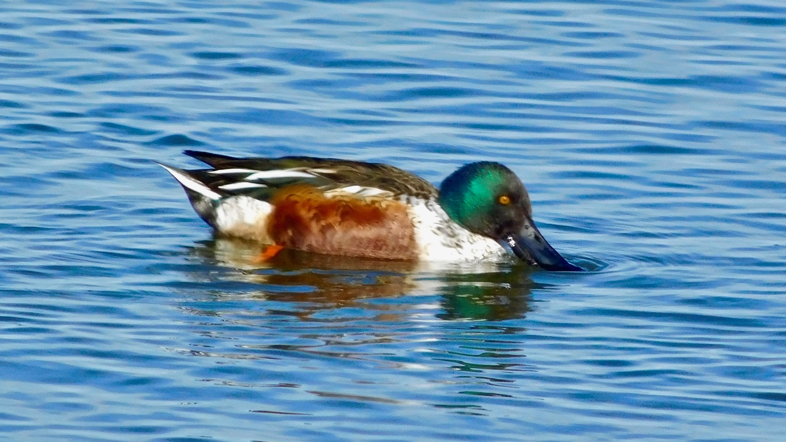 Around the next bend, I saw four northern shovelers gleaning the water’s surface for tiny, edible organisms. Their species has developed an enormous, scooped bill that allows them to strain their favorite foods from the shallow wetlands.