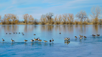 Out of the sky, a steady stream of Canada Geese made a noisy landing at the surface’s icy edge. Some of them slid into the open water where they floated freely while others stayed on shore and tucked their beaks into a wing, taking a quick nap.