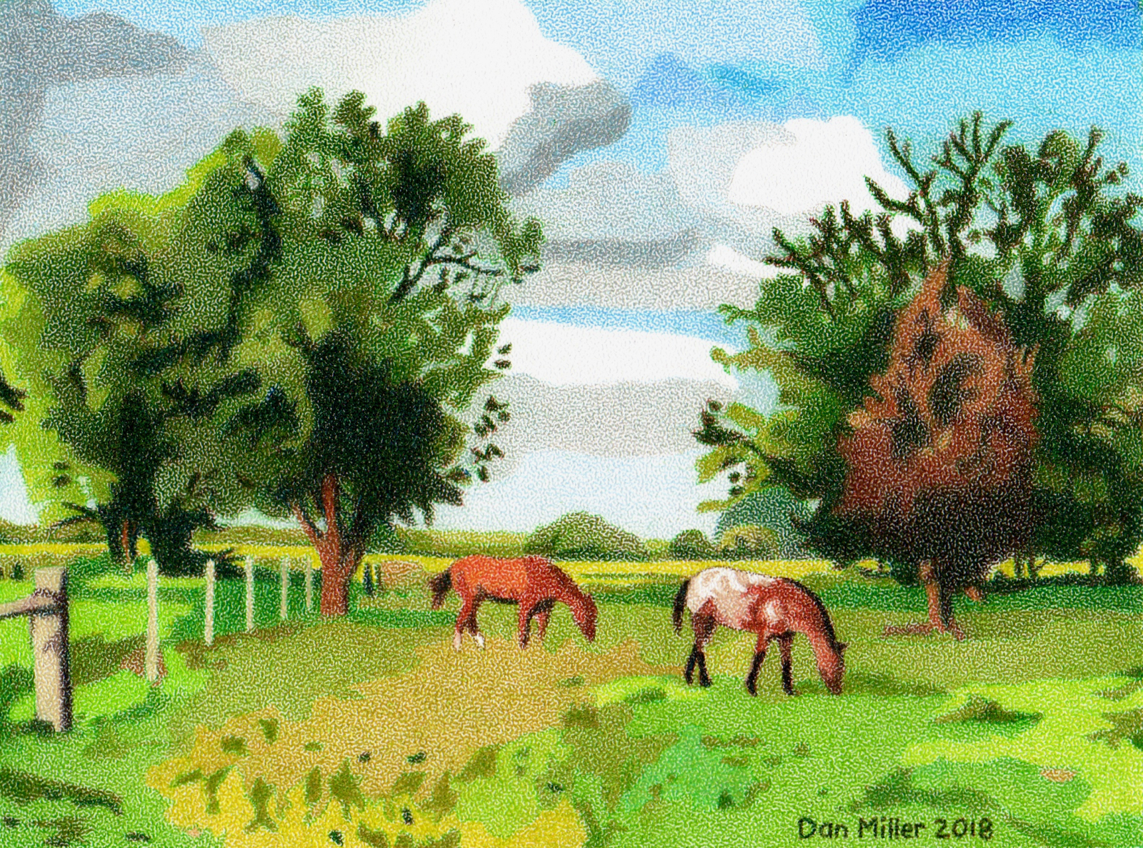 | "Grazing Horses, Nebraska" Colored Pencil |