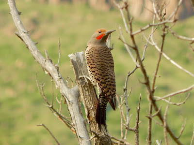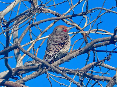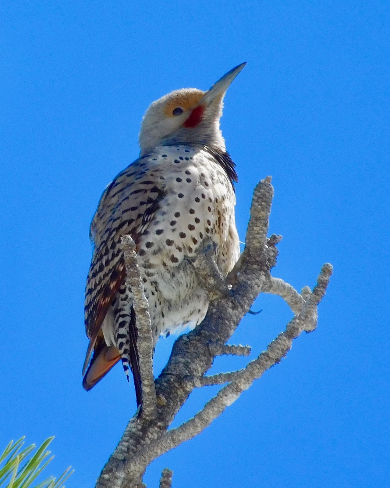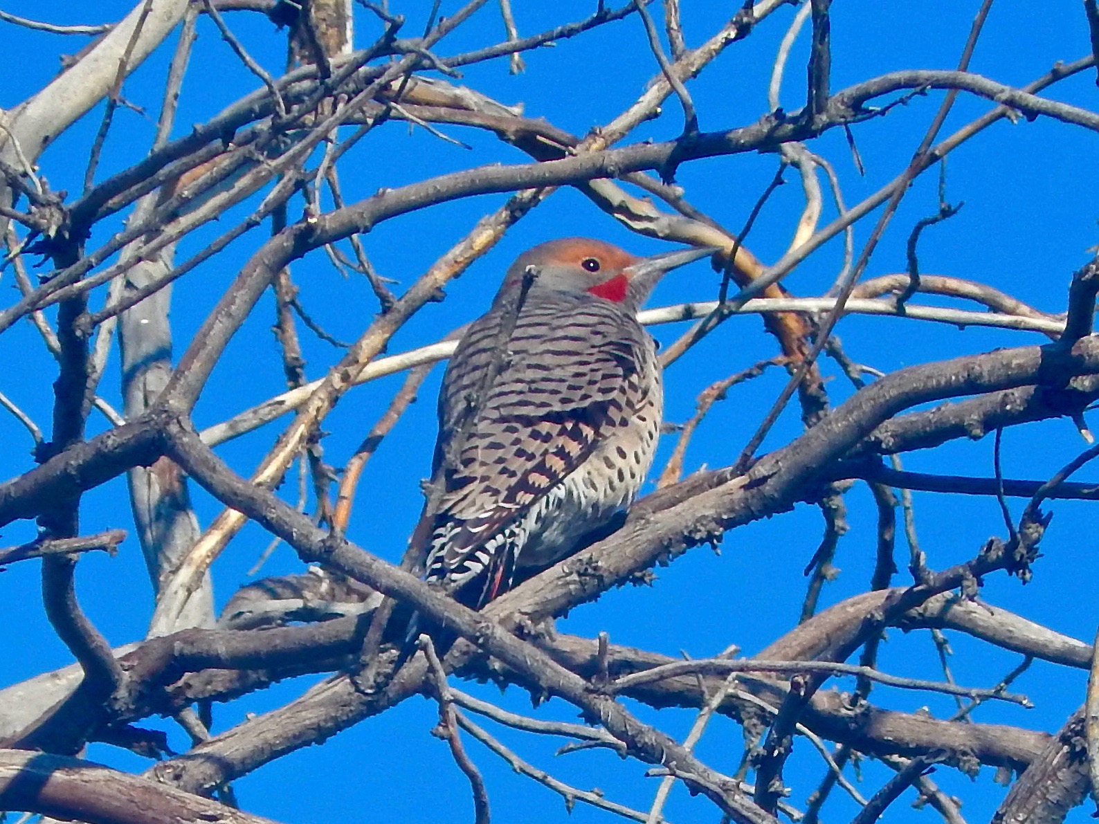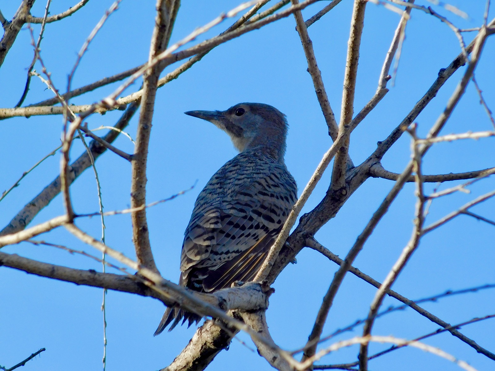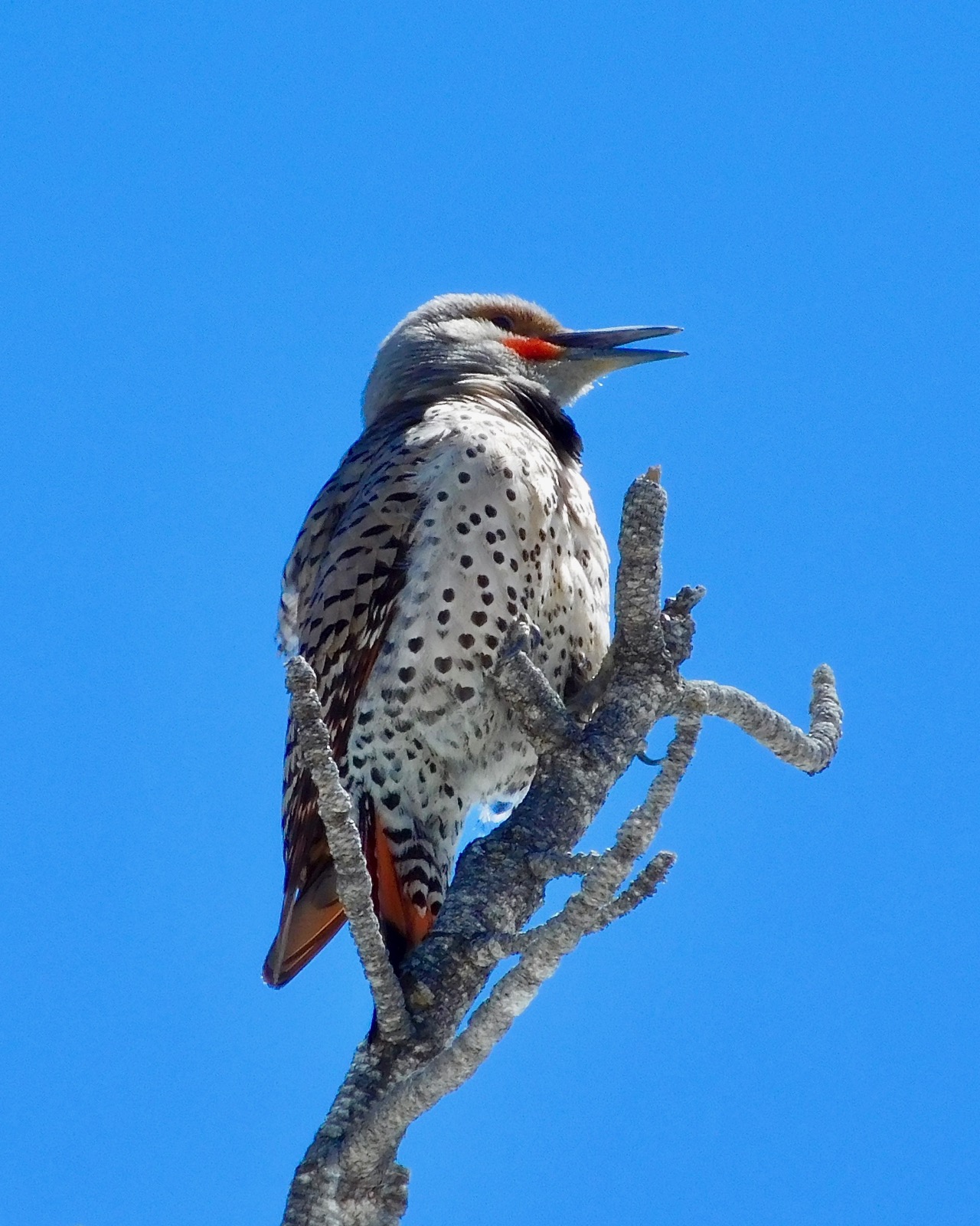 While hiking the summer trails, the flicker is flushed from the grasses and flashes white as he flies for the safety of a higher perch. Despite their off-beat hygiene and raucous call, I’m looking forward to encountering the northern flicker once the weather gets warmer.