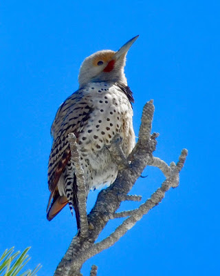 The northern flicker is a unique woodpecker that spends much his day on the ground, poking his beak into the ground while searching for insects. He announces his presence by establishing territory with a familiar call that echoes loudly throughout the pine forest.