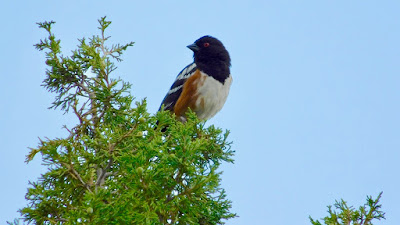 A close cousin, the eastern towhee, used to be considered the same bird as the spotted towhee and in the past they were called the rufous-sided towhee. During the last ice age large ice sheets split the continent down the middle, isolating the separate birds into eastern and western populations. Today, scientists classify the spotted and the eastern as two completely different species.